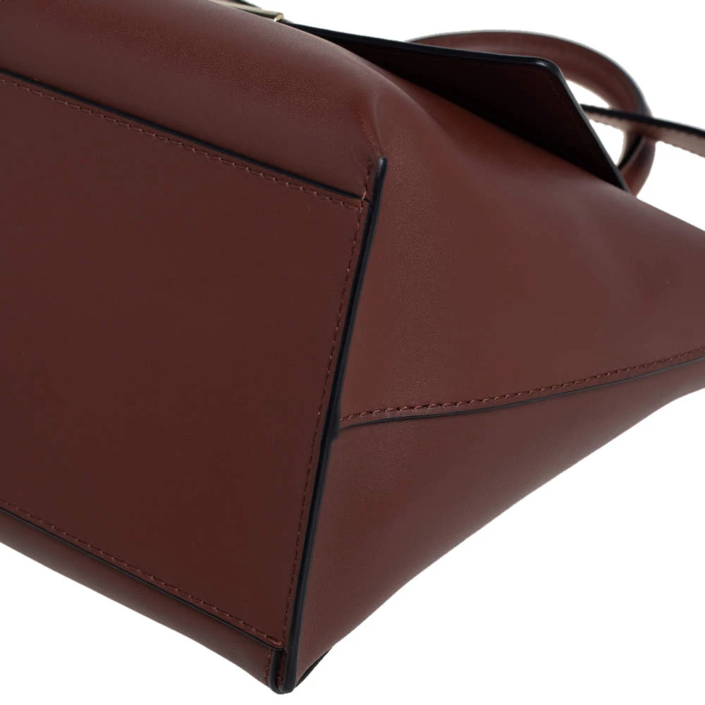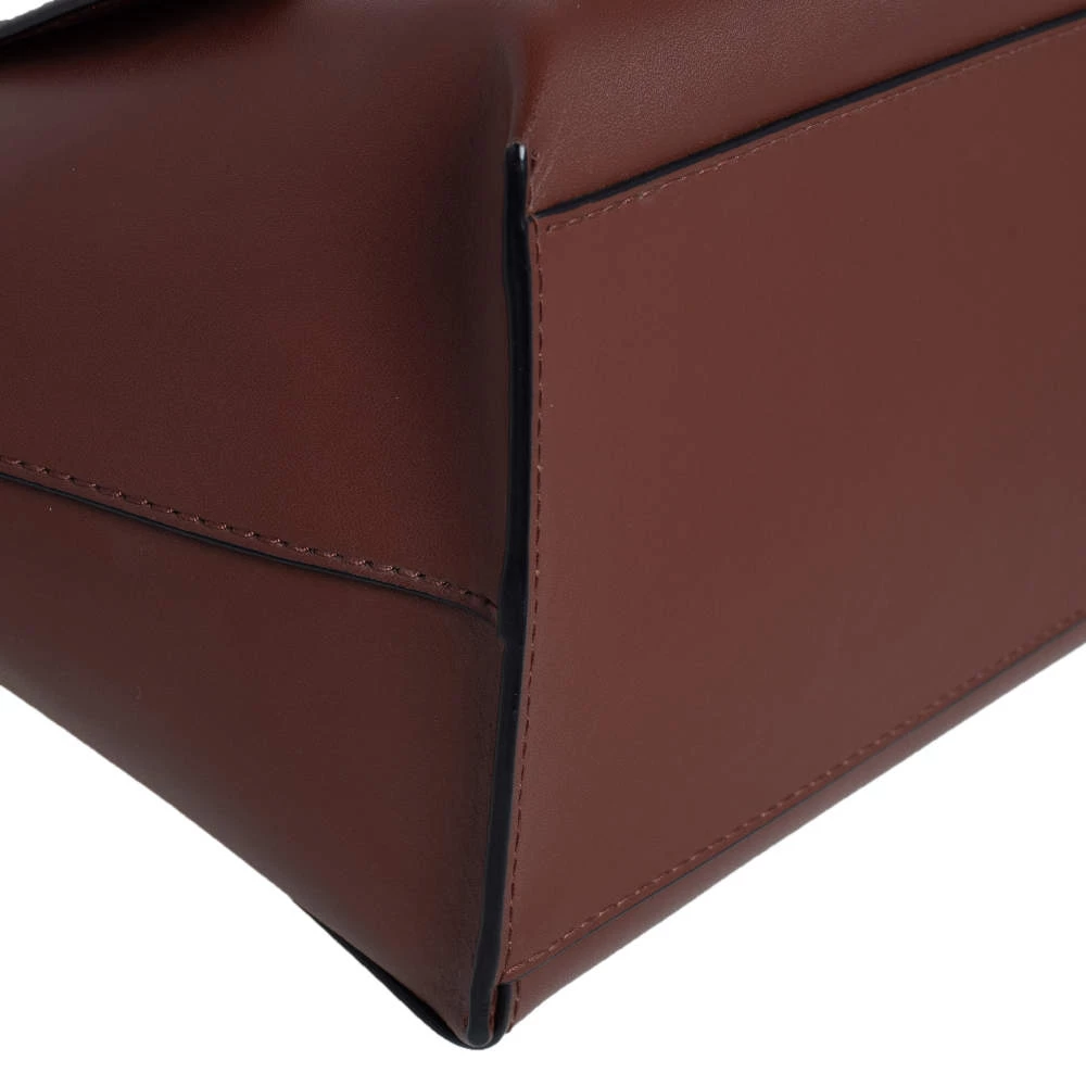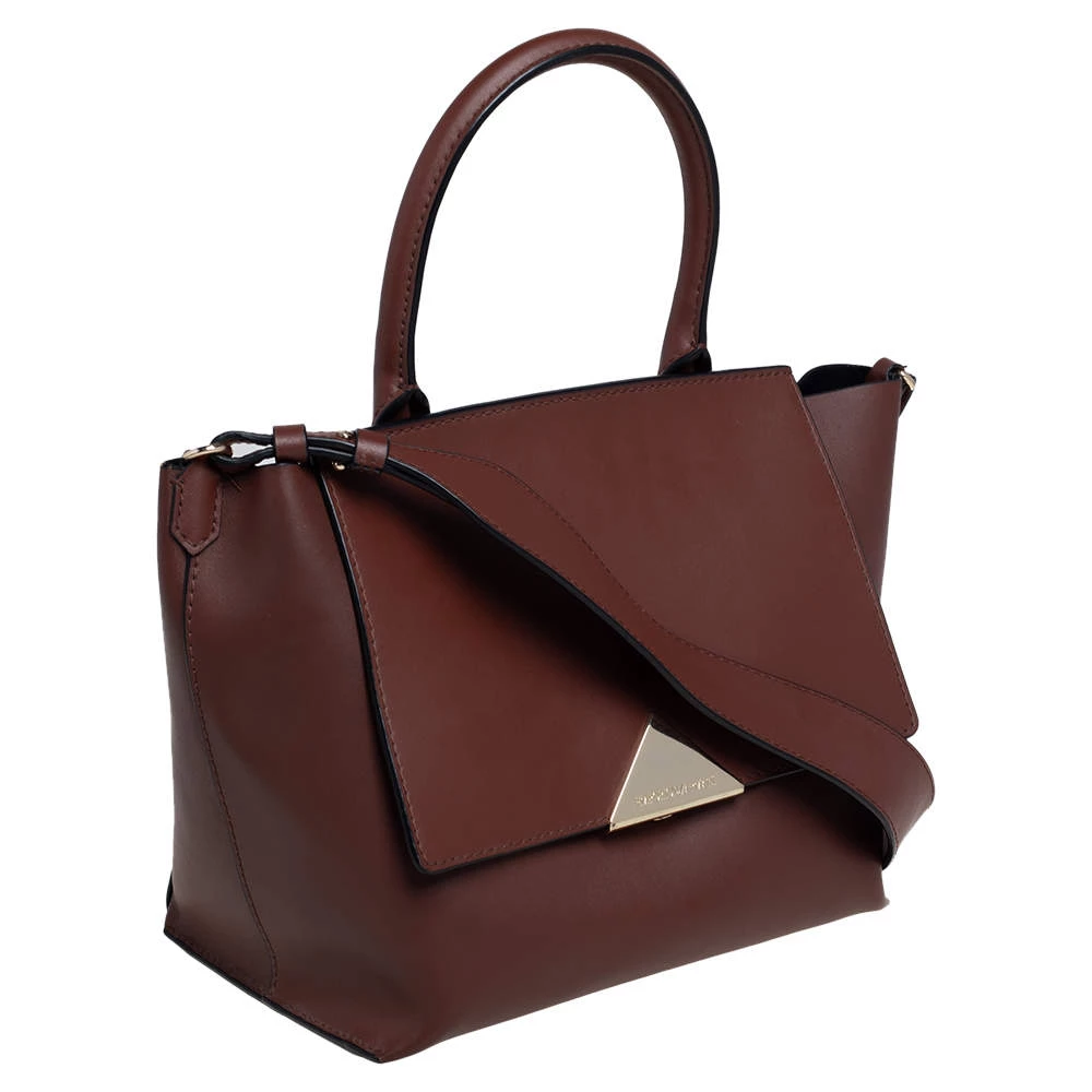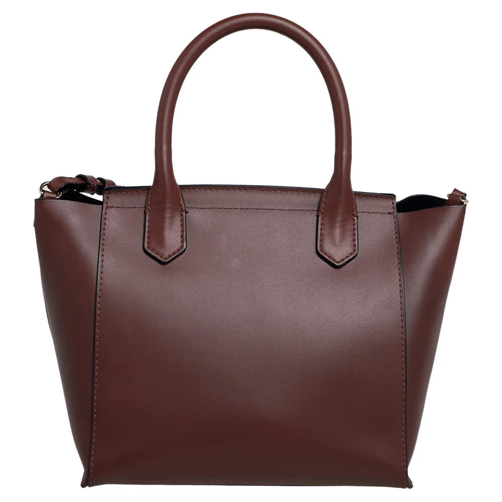 This top handle bag by Emporio Armani will make a great addition to your designer handbag collection. It flaunts a classy brown leather exterior and is apt for formal use. This Emporio Armani bag is definitely worth the investment.
