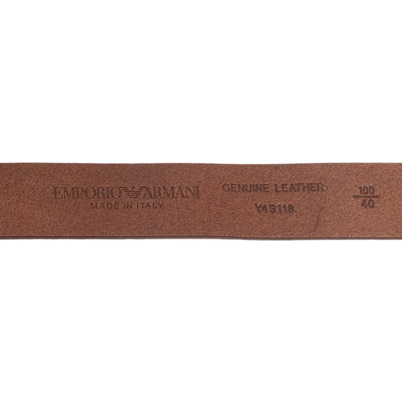 Finish off your outfit with this sleek Emporio Armani belt. Crafted from brown leather, it features the logo engraved buckle in silver-tone hardware, with E and A initials.