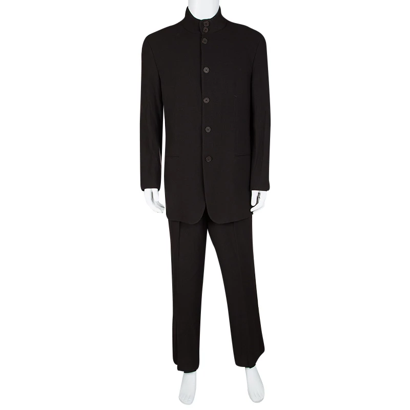 You’re ready to nail any formal event and make a mark with this smart suit from Emporio Armani. The brown regular fit suit is made of quality materials and projects a smart appearance.The blazer comes with a high neck, front buttons, and pockets. The trousers flaunt a simple structure with a front button fastening and belt loops. You can pair this suit with a crisp white shirt and Alligator moccasins.