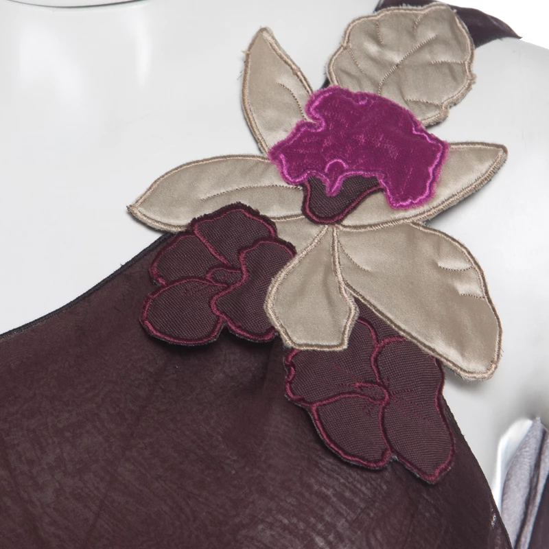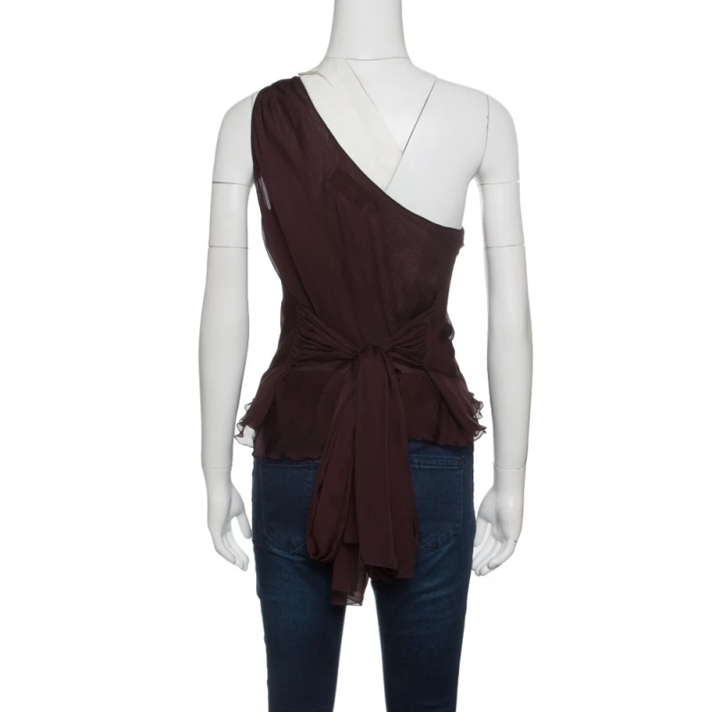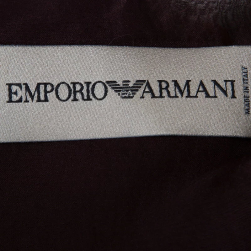 This lovely Emporio Armani top features a feminine burgundy hue with stylish one shoulder design detailed with floral appliques. Own it with a statement skirt for evening vibe.