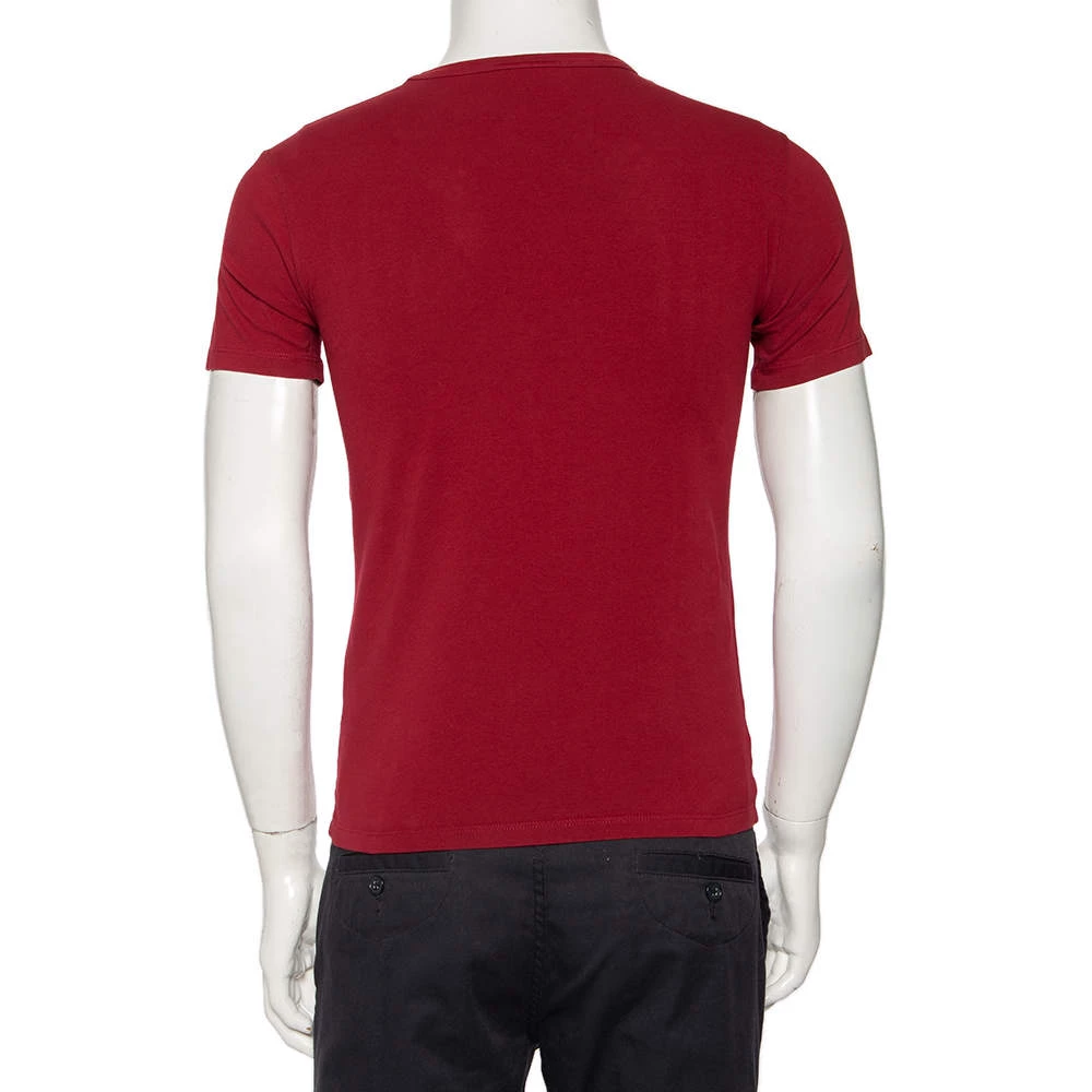 This stylish T-shirt hails from the house of Emporio Armani. It has been crafted from cotton and comes in a lovely shade of burgundy. The front features the logo print while short sleeves and a crewneck finish the must-have creation.