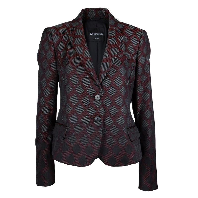 Another meticulously designed piece by the famous fashion house, Emporio Armani, this blazer is cut from textured jacquard and is designed to impress. It features a lapel collar, buttons on the front, two patch pockets with flaps and well fitted long sleeves. The jacket includes a pocket square holder on the front.