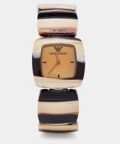 Your everyday style deserves a hint of luxury like this quartz wristwatch from Emporio Armani. It is made from stainless steel & acrylic and it has a champagne dial and a stunning bangle-like bracelet.