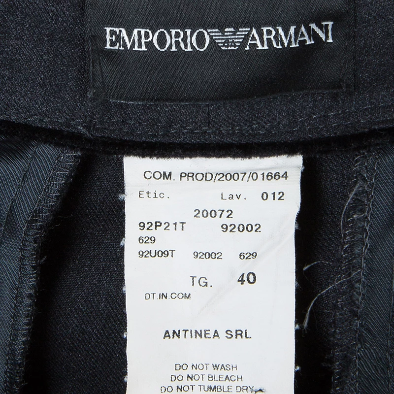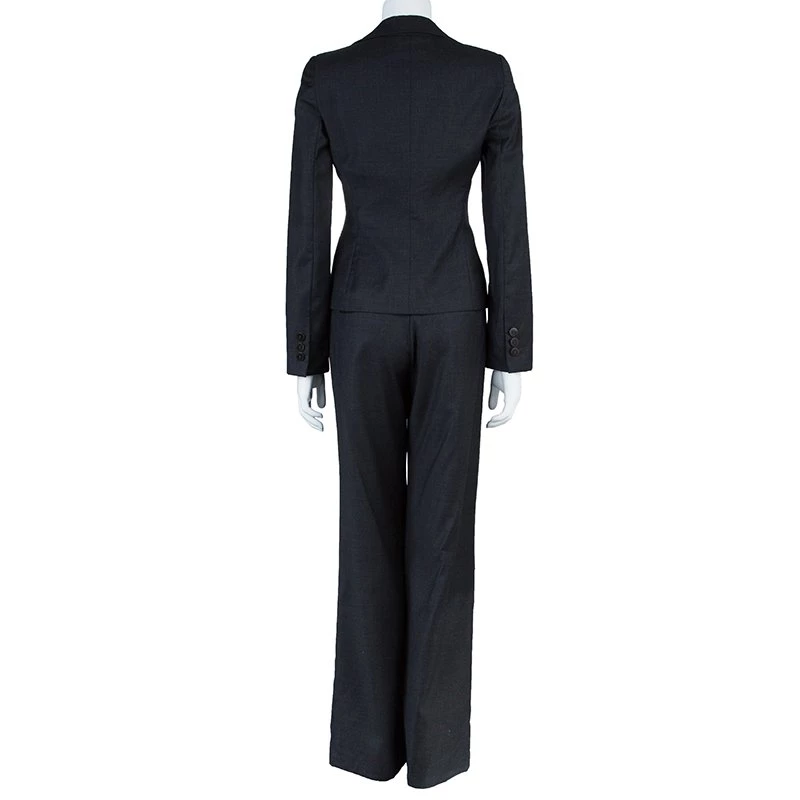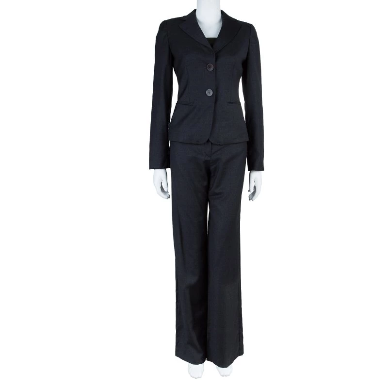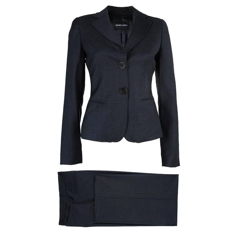 A stunning piece, this Emporio Armani suit will be your stylish companion in your formal meetings. This pant suit comes crafted in charcoal virgin wool. The jacket features lapel collars with button fastenings and comes with front pockets. The matching pants are cut in a relaxed straight cut and are equipped with front zip fly and a button fastening.