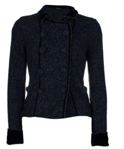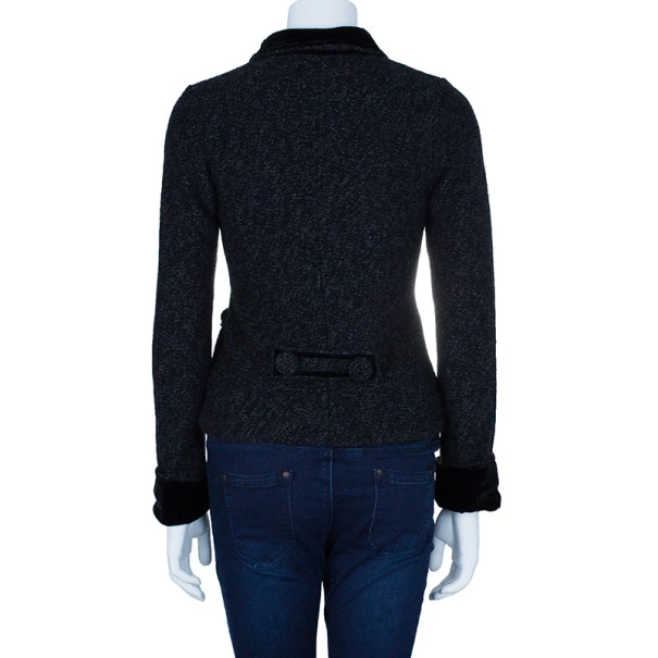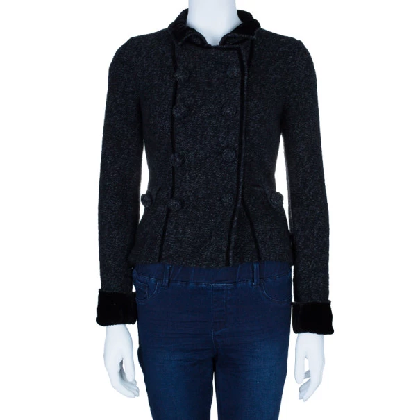 Fight off the cold in style with this Emporio Armani charcoal wool button down jacket. It features a lapel collar, buttons in the front, long sleeves and no pockets.Original Retail Price: US $309