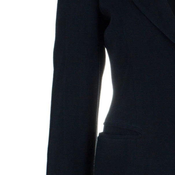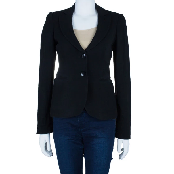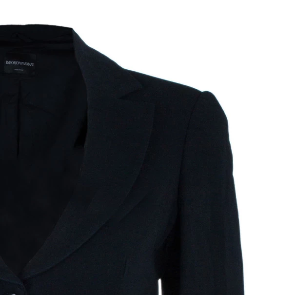 This Emporio Armani blazer will have you look smart and chic at the same time. Made from an acetate blend, its single breasted design features a figure-hugging ut, long sleeves, double front buttons and pockets, and lapel collars.Original Retail Price: USÂ $593