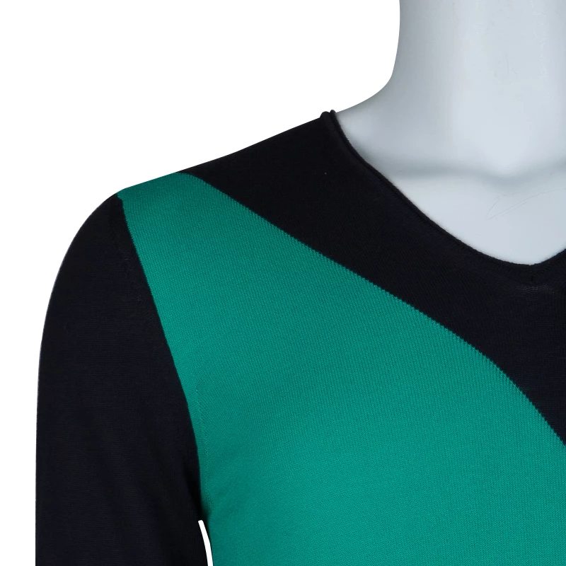 Color blocking calls for a bold style statement. This sweater by Emporio Armani is made from a blend of cotton and viscose. It features a soft V-neck and long sleeves. Wear this with a pair of jeans or trousers for an off-duty look