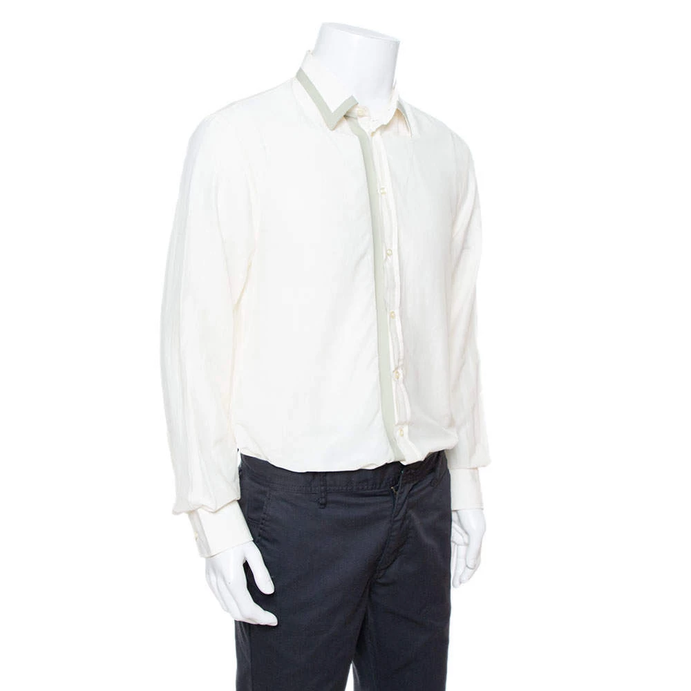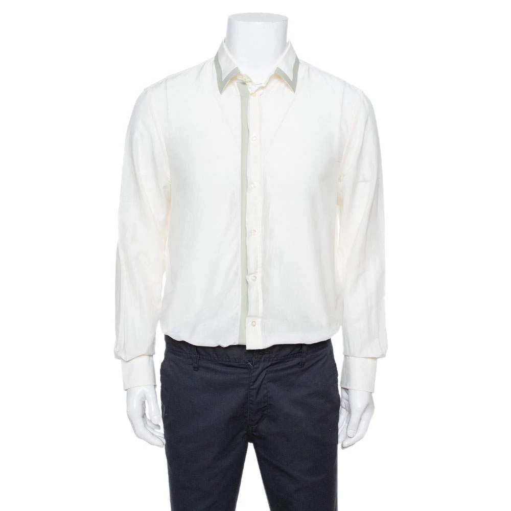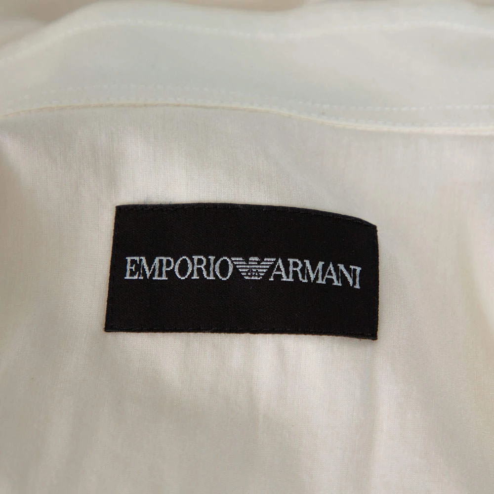 Emporio Armani’s long-sleeved shirt will bring comfortable luxury to your formal style. Made from cotton, it is defined by a contrasting silk trim. It features a simple collar and front button closure.