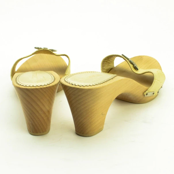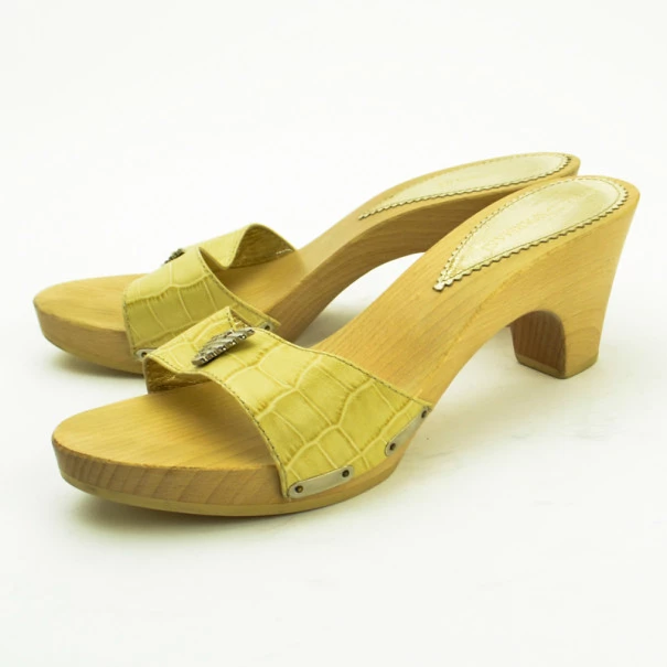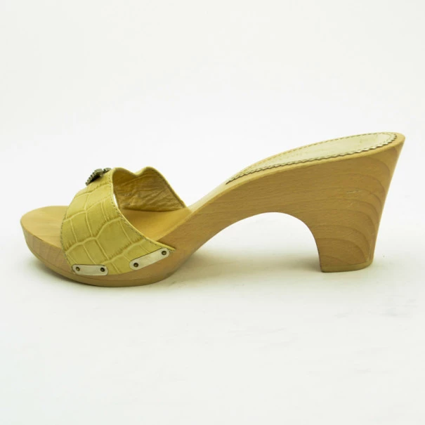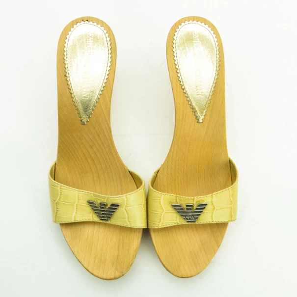 These urban chic clogs from Emporio Armani have platforms made entirely from wood. The toe straps are crafted from beige leather and embellished with the brand logos. The insoles feature leather Emporio Armani labels.Original Retail Price:US $240