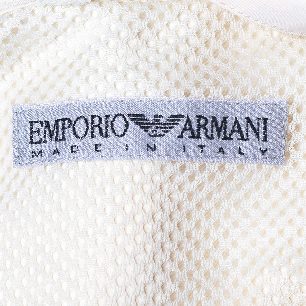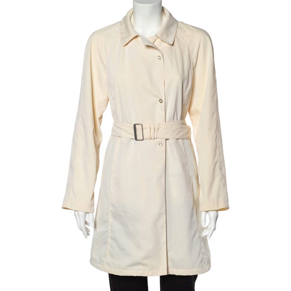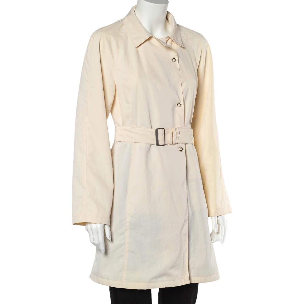 This elegant and alluring jacket from Emporio Armani can be styled with all your casual attire. Get contemporary style easily with this double-breasted coat in a lovely shade of cream. It has long sleeves, a belt detail and a structured silhouette.