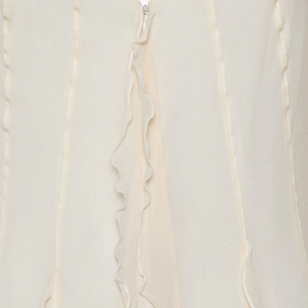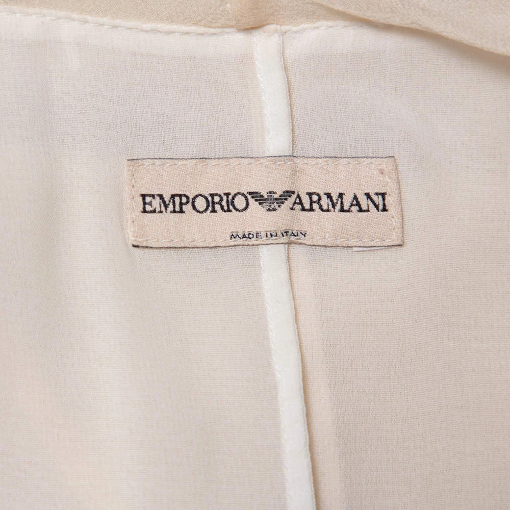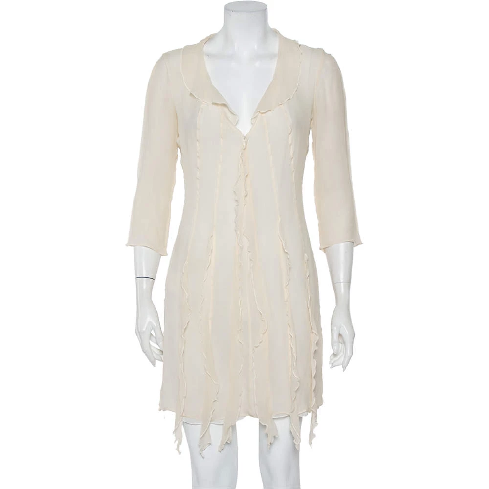 Look feminine and stylish when you wear this Emporio Armani dress. Get a fun, playful look with this mini dress featuring a cream hue and ruffle details. With an impeccable balance of comfort and style, this silk ensemble is a closet staple.