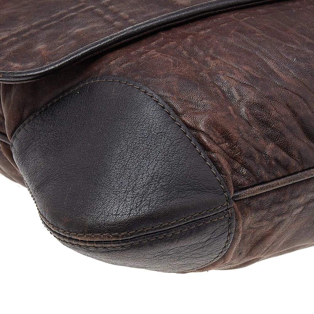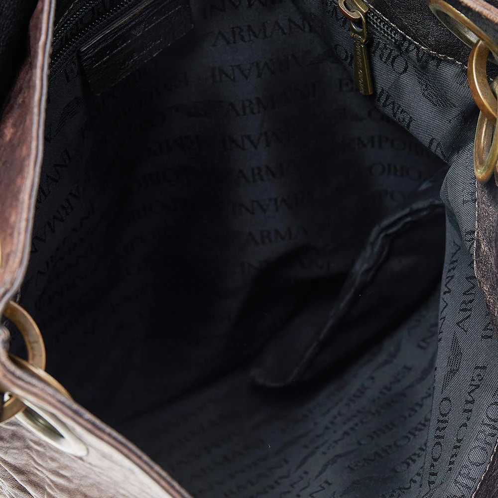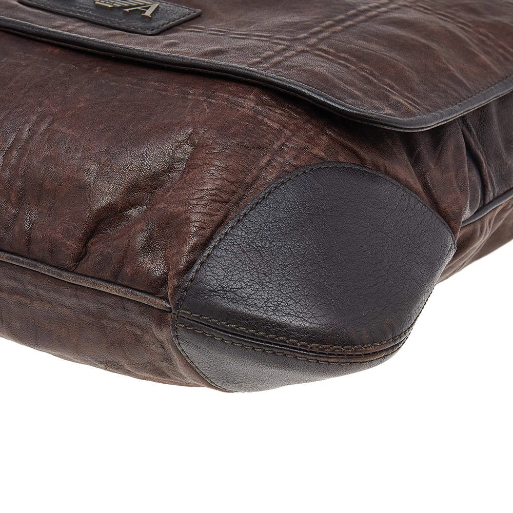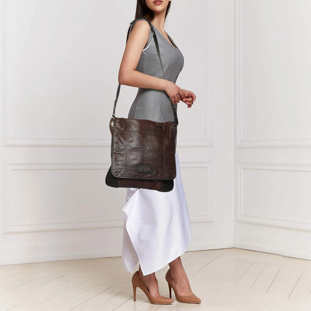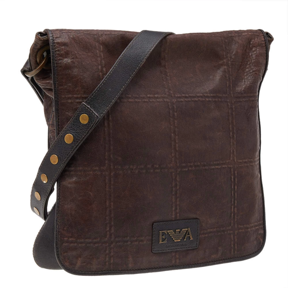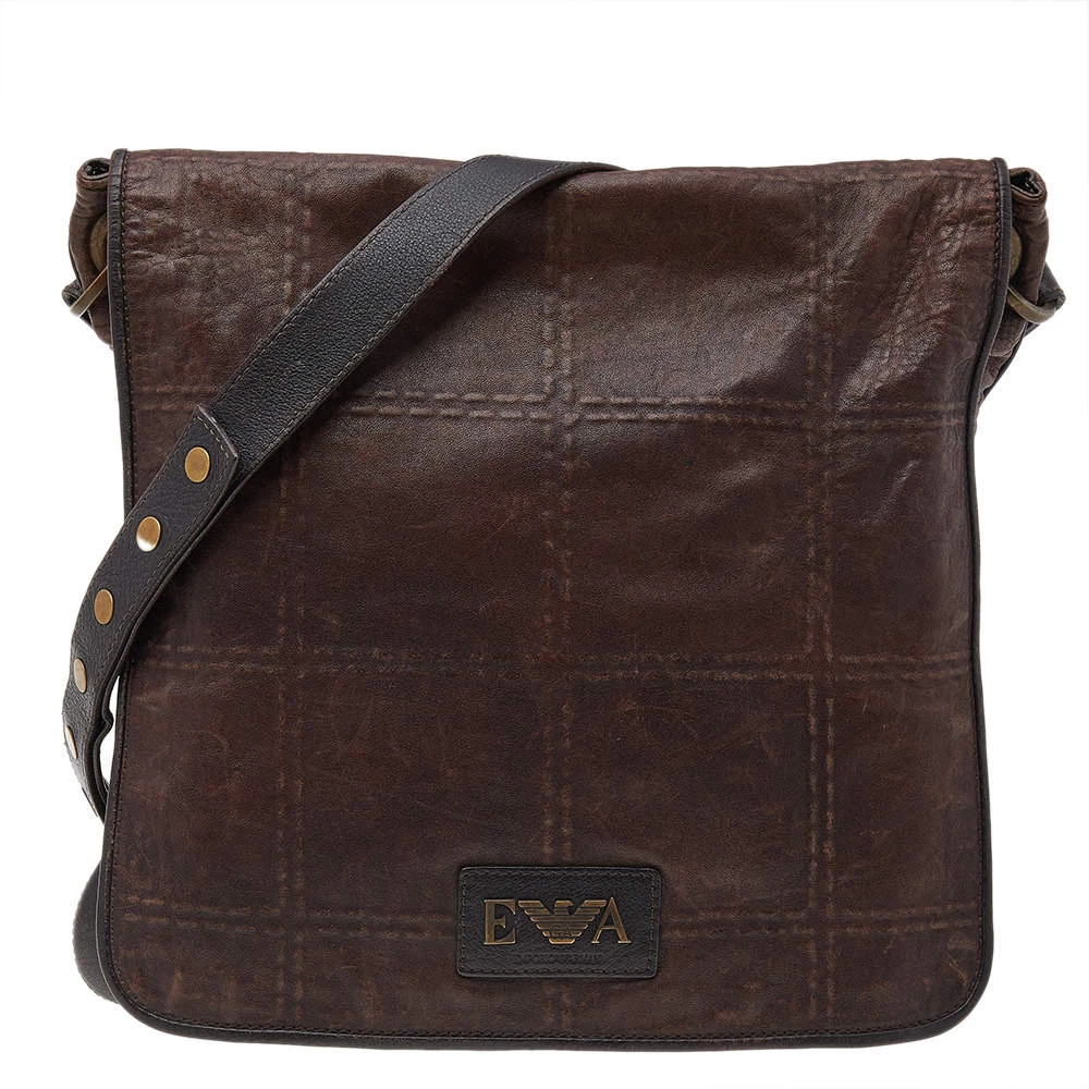 This smart and functional messenger bag from Emporio Armani is a must-have. Crafted in Italy, it is made of the dark brown leather. It comes with a front flap that opens to a fabric-lined interior with enough space for your daily essentials. It is held by a single shoulder strap.