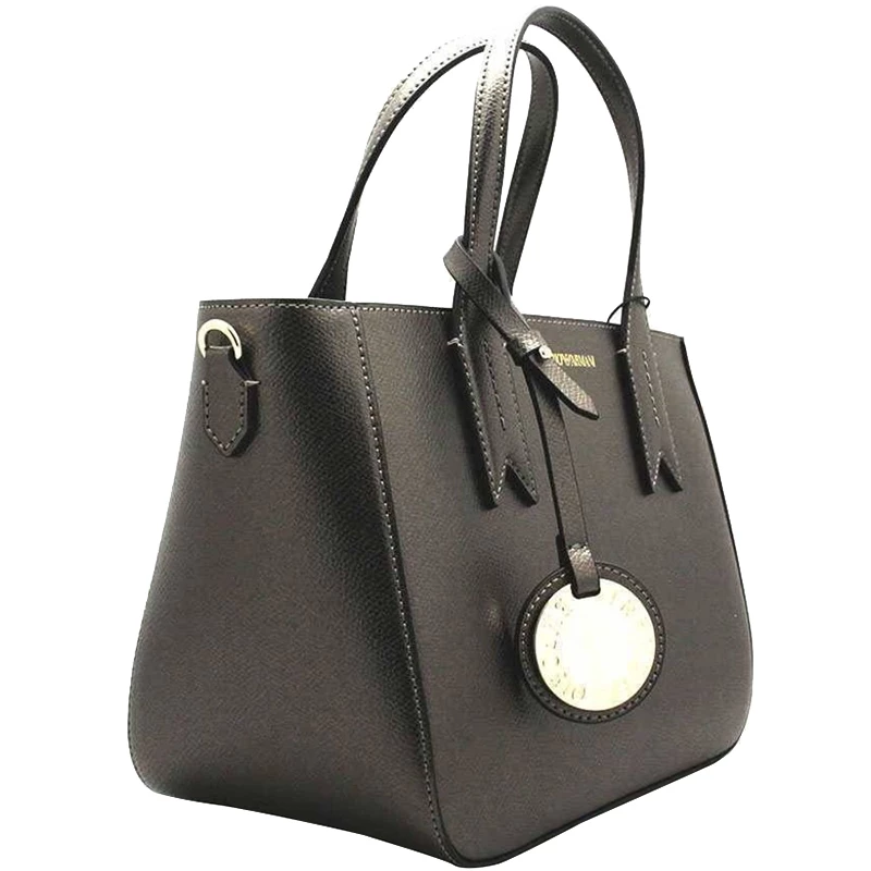 This chic yet functional bag from the house of Emporio Armani makes a wonderful addition to your collection. It has been designed from a luxurious leather body and comes fitted with two rolled top handles. It is secured with a top zipper and detailed with gold-tone brand lettering on it. This bag can easily hold your essentials in a great style. Attach the shoulder strap for days you are busy running errands.
