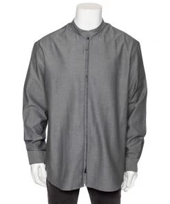 This Giorgio Armani grey shirt is tailored using cotton into a comfortable shape. It has a simple collar, front zip closure, and long sleeves.