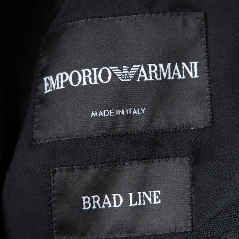 The Brad Line jacket from Emporio Armani features a ribbed pattern all over the black and grey body. It has well-structured shoulders with shawl collar and two flap pockets. Wear this with well-fitted pants or a bodycon dress for a smart look.