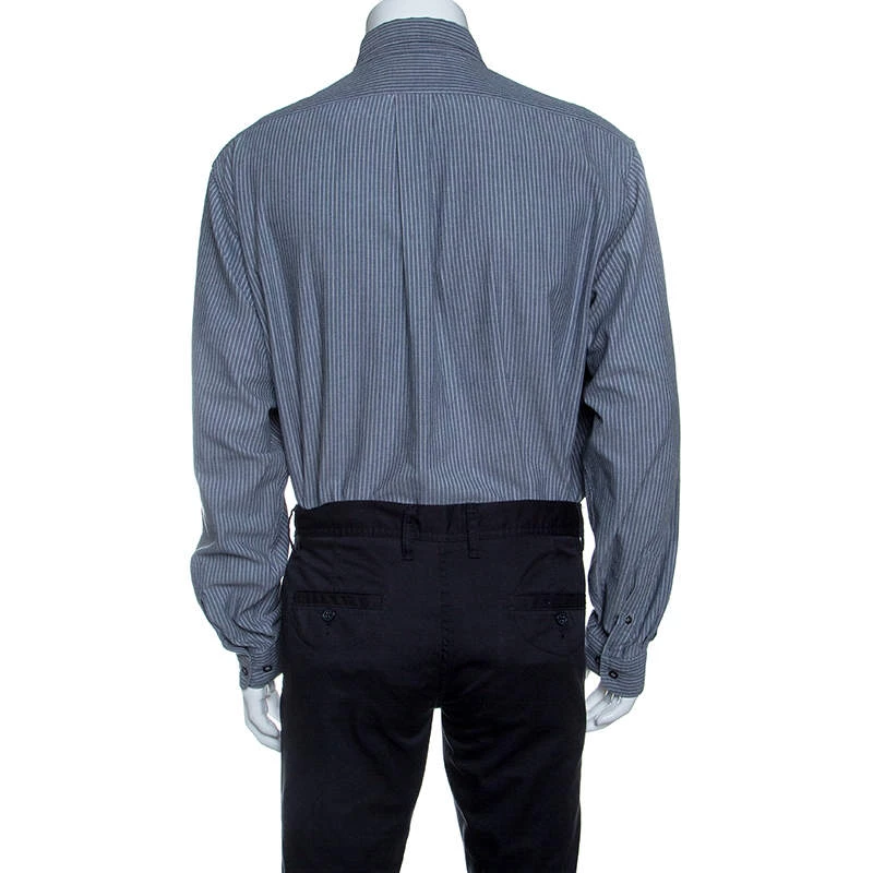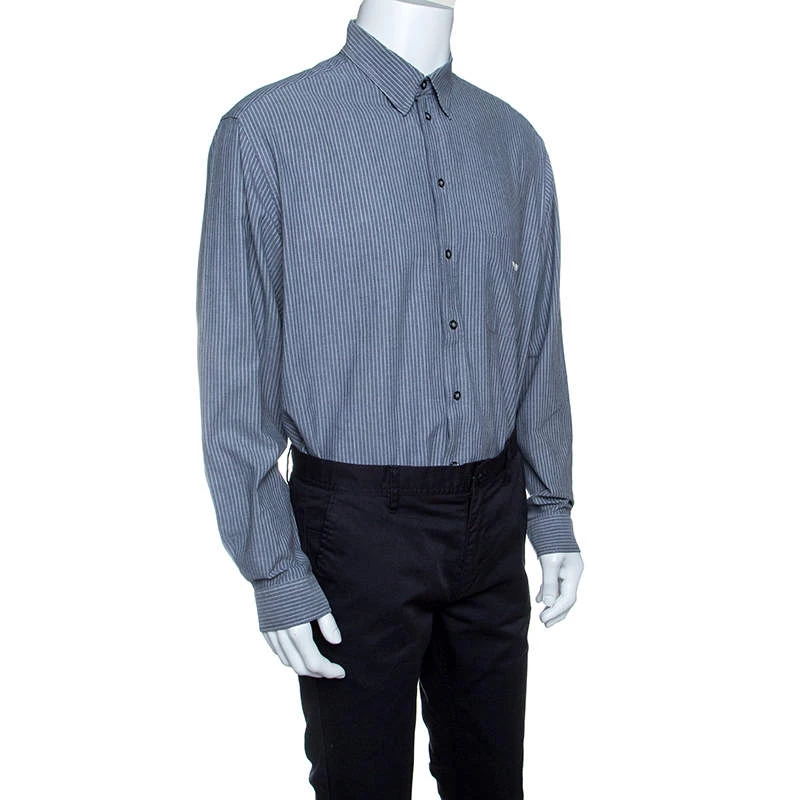 Tailored to make you look classy and presentable, this button down shirt from the house of Emporio Armani comes crafted in 100% cotton. This grey and white shirt flaunts the chevron patterned stripes all over. It has long sleeves, buttoned cuffs and sharp collars for an ideal formal look.