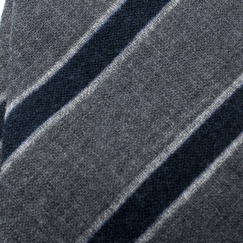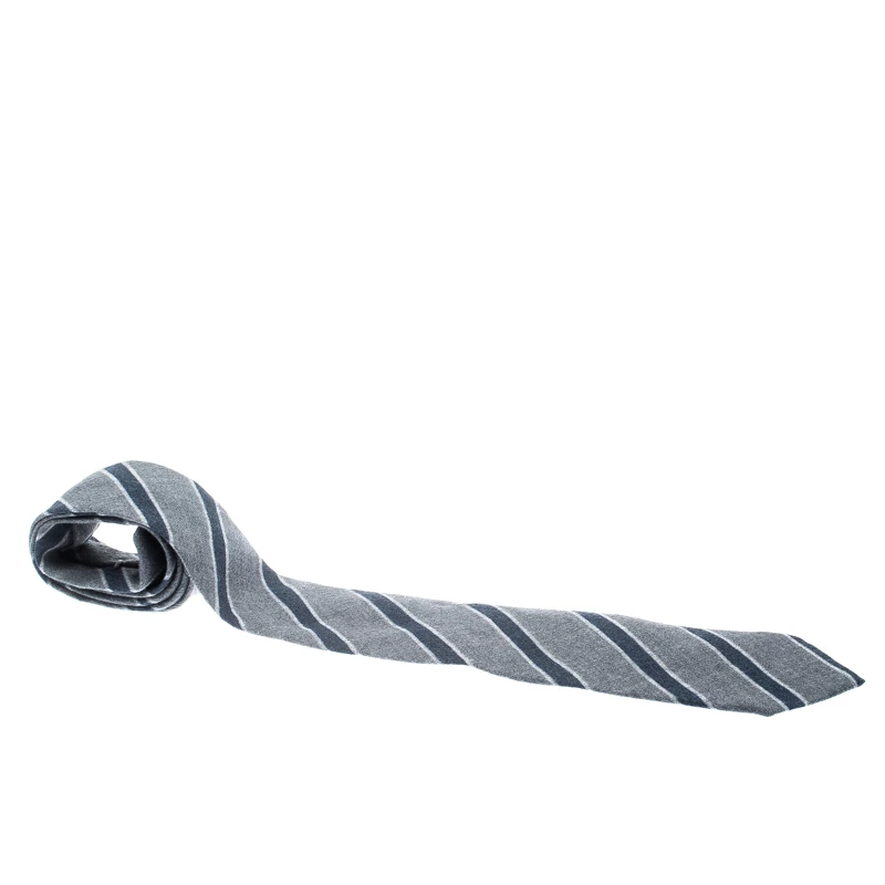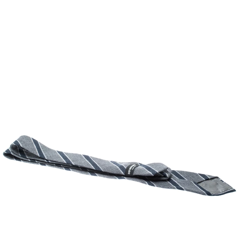 Accessorize your blazers with this grey and blue tie from Emporio Armani. It is made of 100% wool and features a striped pattern all over it. It flaunts a neatly stitched keeper loop at the back and is perfect to compliment your debonair self!
