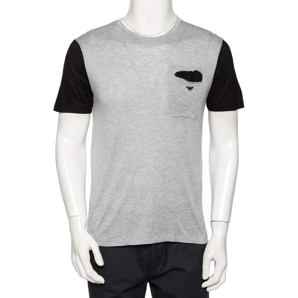 Basic t-shirts are a must-have for any wardrobe! Emporio Armani brings you the best. Made from cotton knit material in shades of grey & black, it features a crew neckline, a pocket on the front, and a relaxed silhouette.