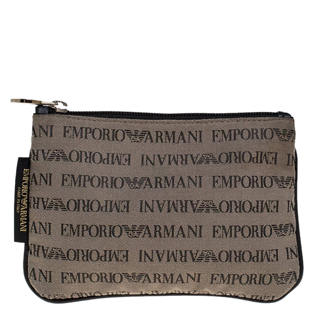 Flaunt this Emporio Armani pouch and impress everyone with your style. Sleek and stylish, it is crafted from the brand’s monogram canvas. It comes in a lovely shade of grey that will complement a host of outfits. It comes with a zip closure that leads to a nylon interior with enough space for essentials. It is finished with silver-tone hardware.