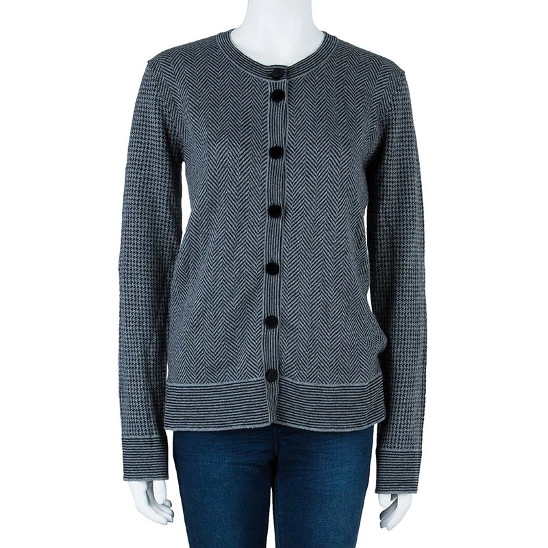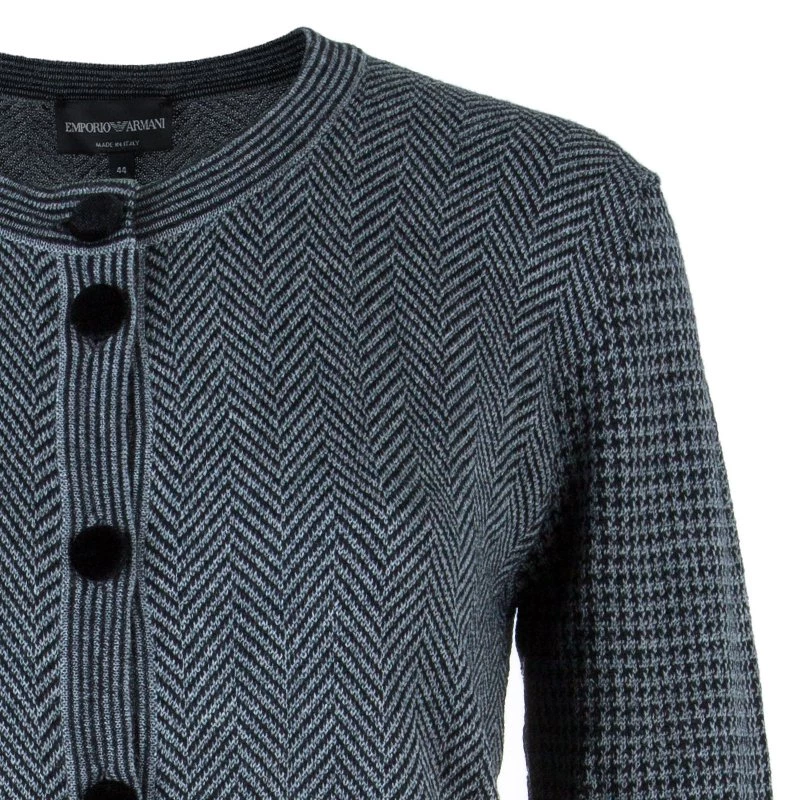 This sophisticated cardigan from Emporio Armani comes in a basic simple design. It is super warm and easy maintenance with virgin wool and mohair, which is blended with polyamide and viscose. It comes with a bold, button-down closure at the front, a round neckline, and long sleeves. It features ribbing detailing at the neck, arms, hem and front.