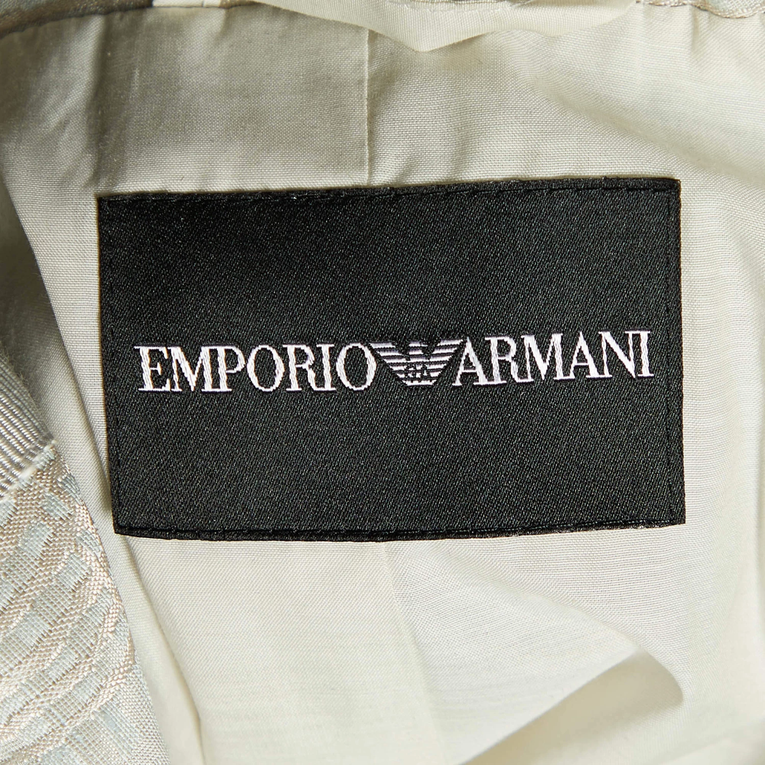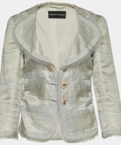 A perfect blend of fashion and functionality, this jacket from the Emporio Armani is a worthy investment to make. It is designed using grey checked linen blend fabric, which is embellished with ruffled formations. It showcases buttoned closures and long sleeves. This stunning jacket awaits to be a part of your closet.