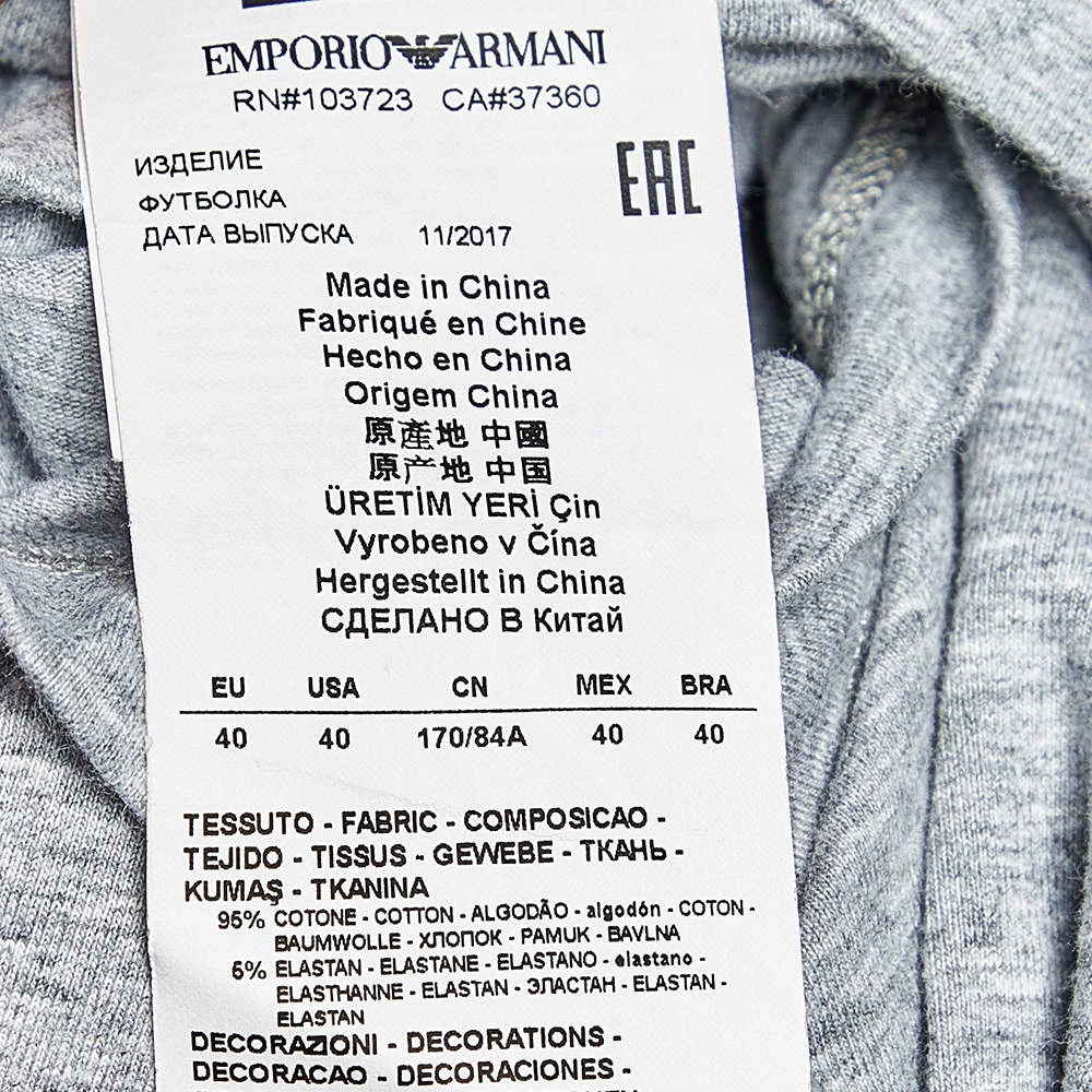 A seamless blend of comfort, luxury, and style, this Emporio Armani t-shirt is a must-have piece! Made from cotton in a grey shade, the creation is elevated by a logo detail on the front. Finished off with short sleeves and a crew neckline, it can be styled with denim pants for a cool look.