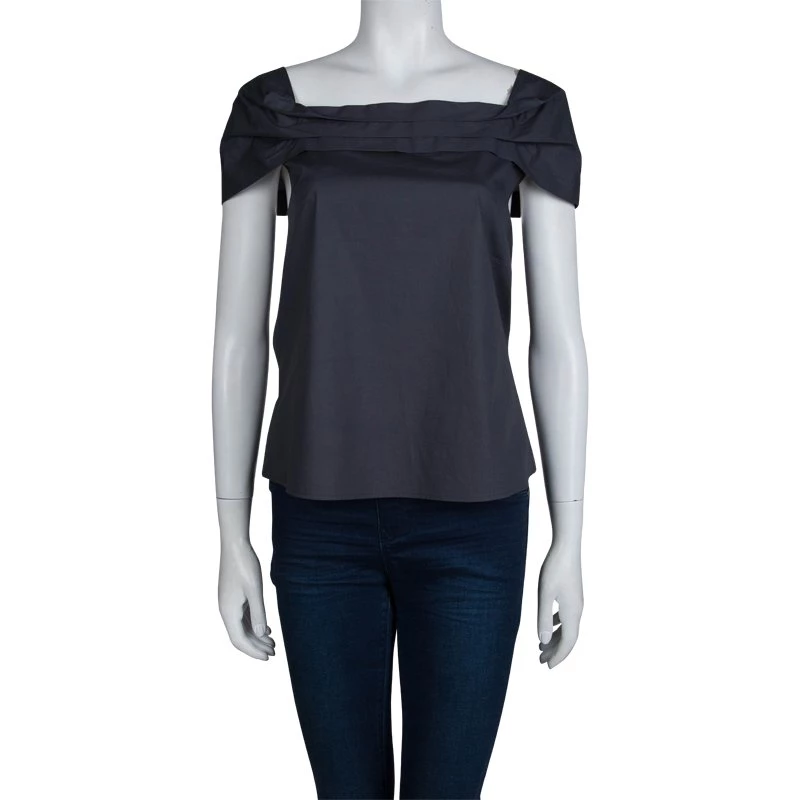 A concise design, this cotton top from the house of Emporio Armani features a square neckline with pleat details and flattering cap sleeves. Tailored in a straight fit silhouette, this top has a rounded back with three-button detailing, making it a timeless addition to your off-duty wardrobe.