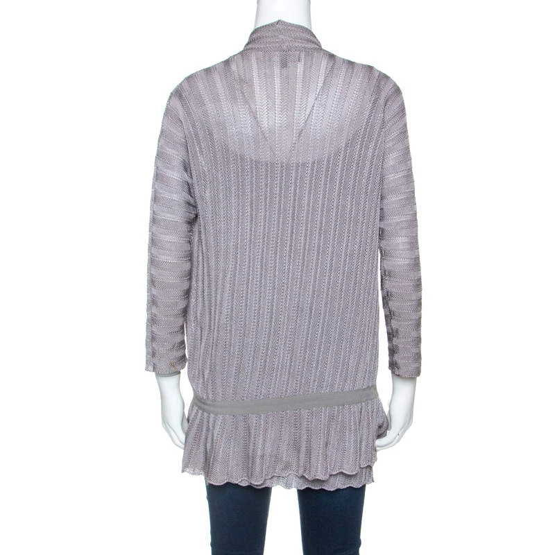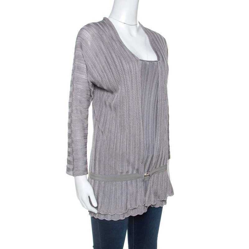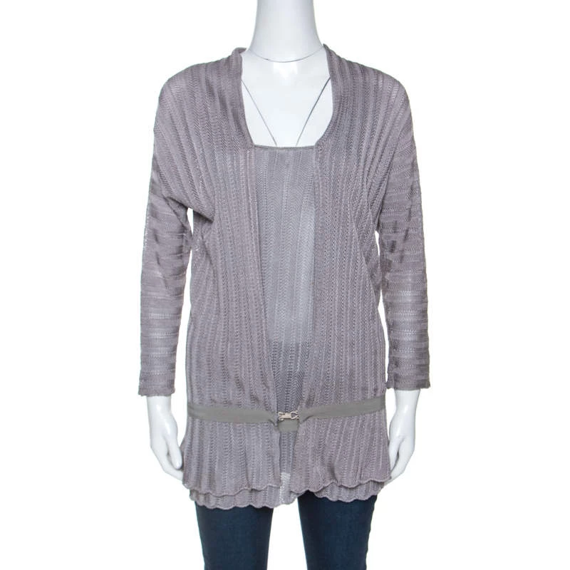 This cardigan set from Emporio Armani is a great option for outings with friends. Crafted from quality fabrics, it comes in a lovely shade of grey. It features a crochet knit top, a cardigan with long sleeves, a hook closure, ruffled hem and a relaxed silhouette. It makes for a great buy.