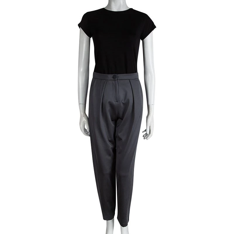 These grey trousers from Emporio Armani are the perfect blend of smart and effortless. Designed to sit high on the waist, it falls with distinctive pleats into a tapered leg that crops at the ankle.