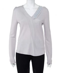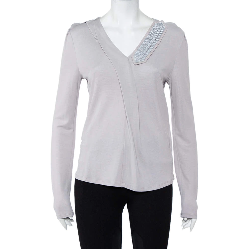 If your style is simple and feminine, this grey top by Emporio Armani is the perfect pick for you. Made from jersey fabric, this designer top is versatile, ideal to pair with tailored pants, simple jeans, or skirts.