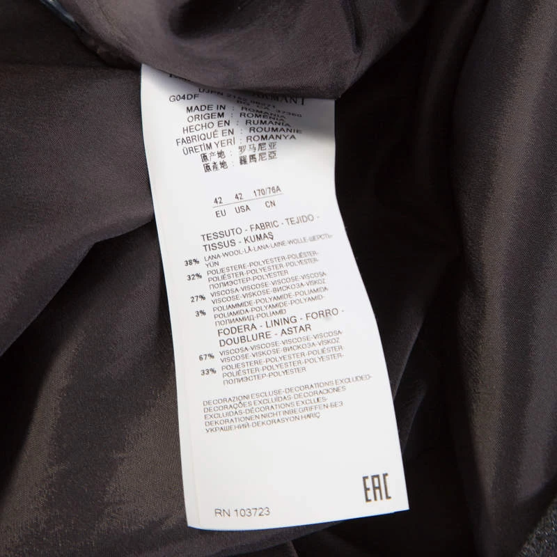 - Fabric: Shell: 38% Wool , 32% Polyester , 27% Viscose , 3% Polyamide ( Lining: 67% Viscose , 33% Polyester )