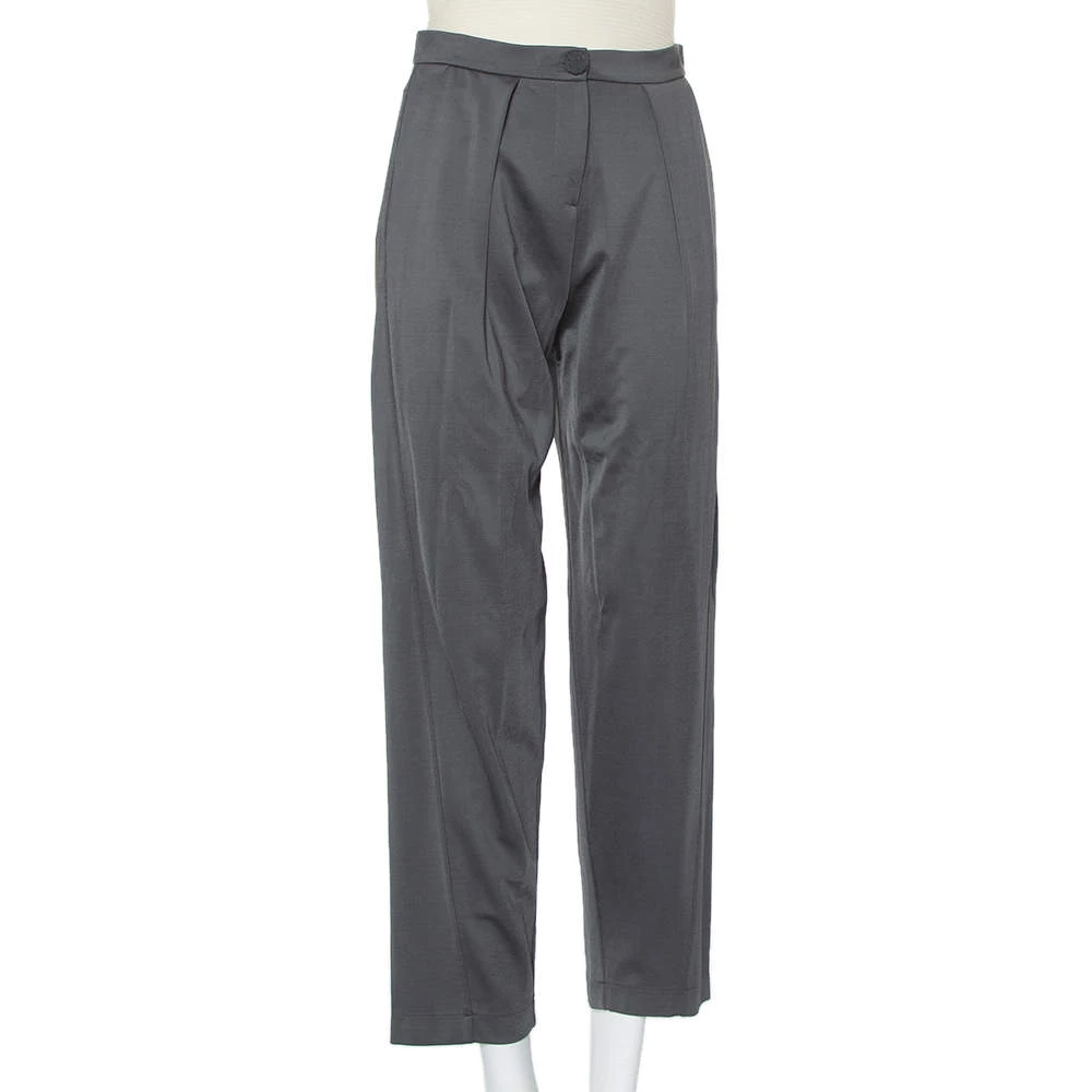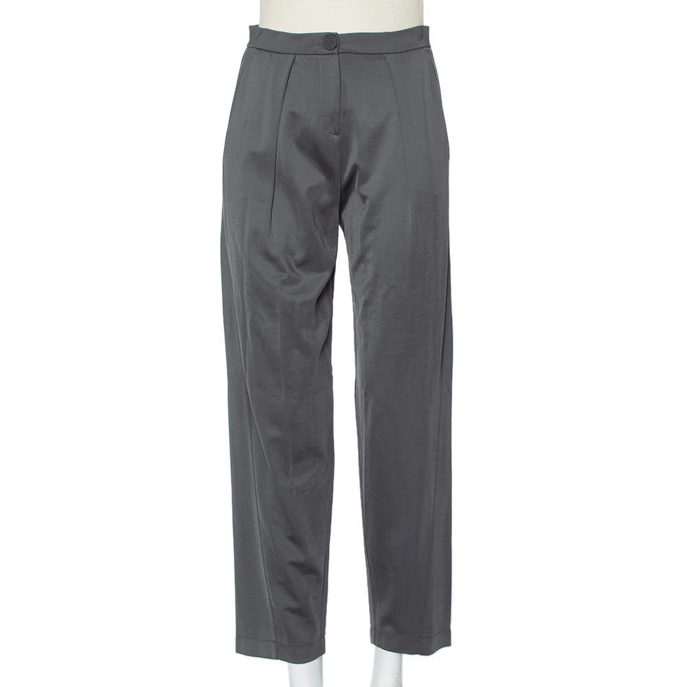 Tailored from quality fabrics, these trousers will provide comfort and keep you in style. Created by Emporio Armani, the trousers feature pleats on the front and a zip closure. These grey trousers will work well for a formal event.