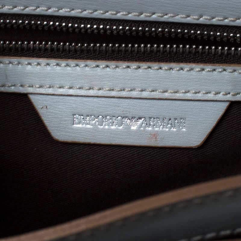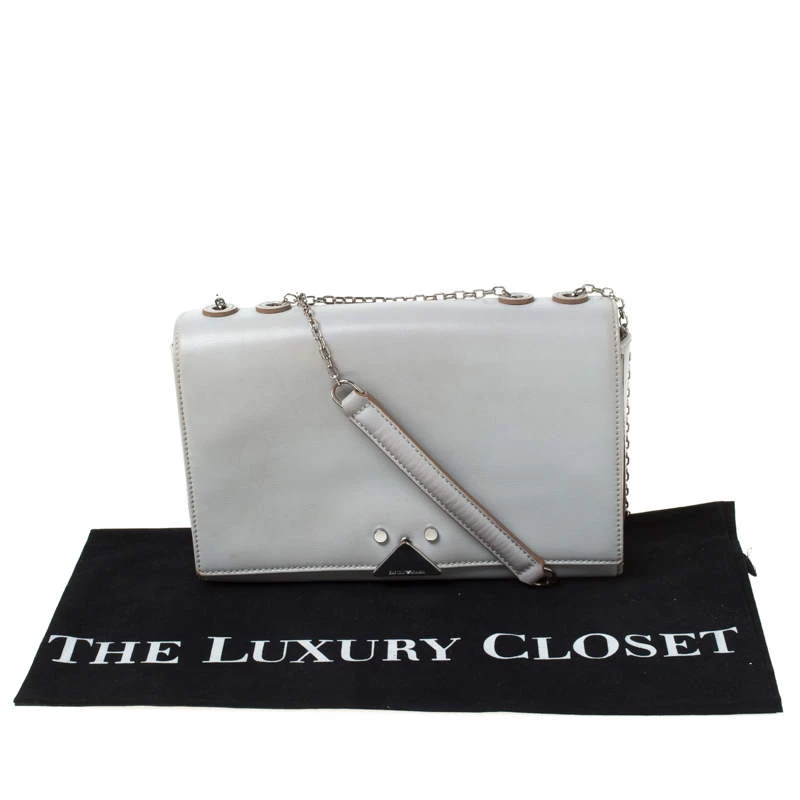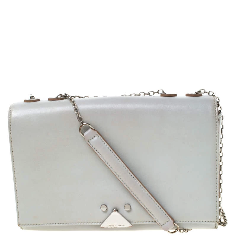 This grey bag from Emporio Armani displays your fashion-forward choice when it comes to accessories. Crafted from grey leather, the bag is held by a chain-link and the front flap opens to a fabric-lined interior.