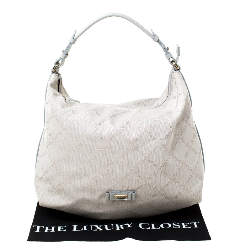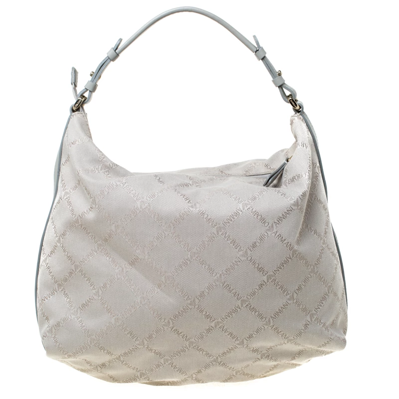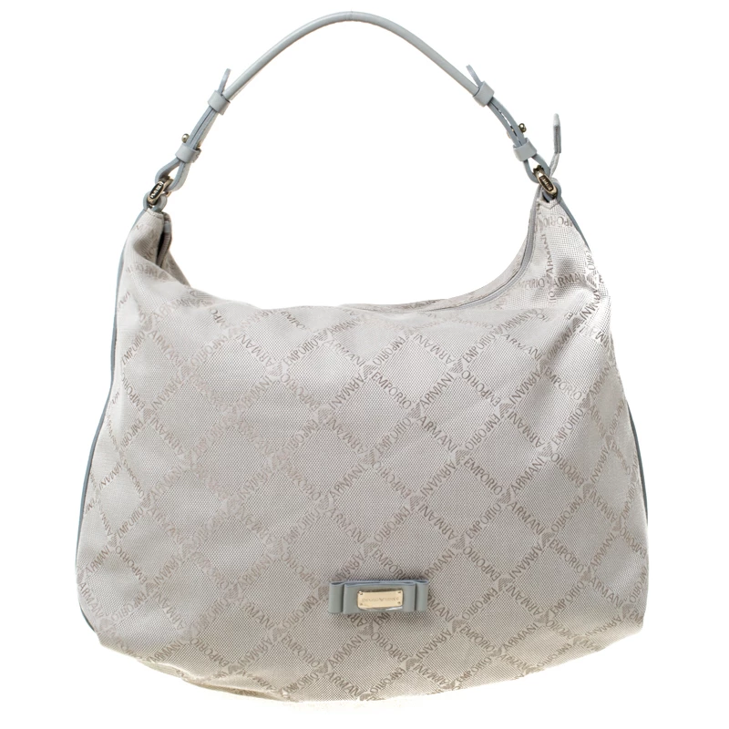 This beautifully stitched monogram canvas and leather hobo is by Emporio Armani. With a capacious satin-lined interior, it will house more than your essentials. Boasting of a seamless finish, this hobo offers style and utmost practicality.