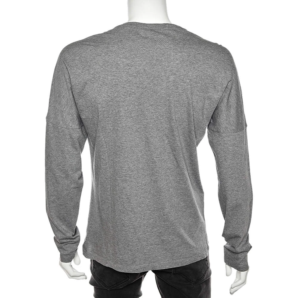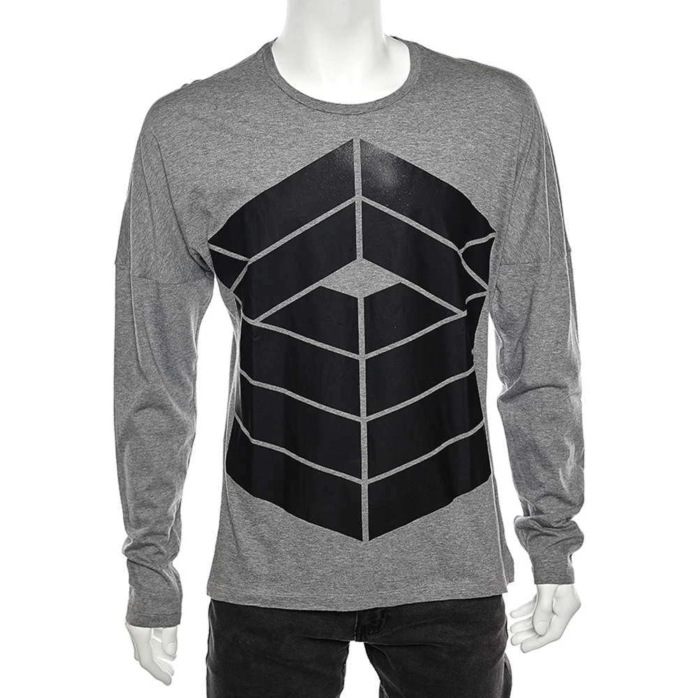 Exude class and sophistication as you wear this T-shirt from Emporio Armani. It is made from grey cotton, which is highlighted by a contrast print on the front. This T-shirt has long sleeves.