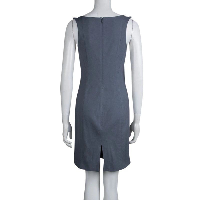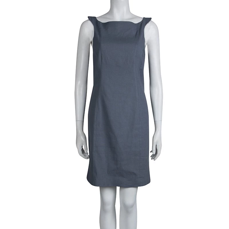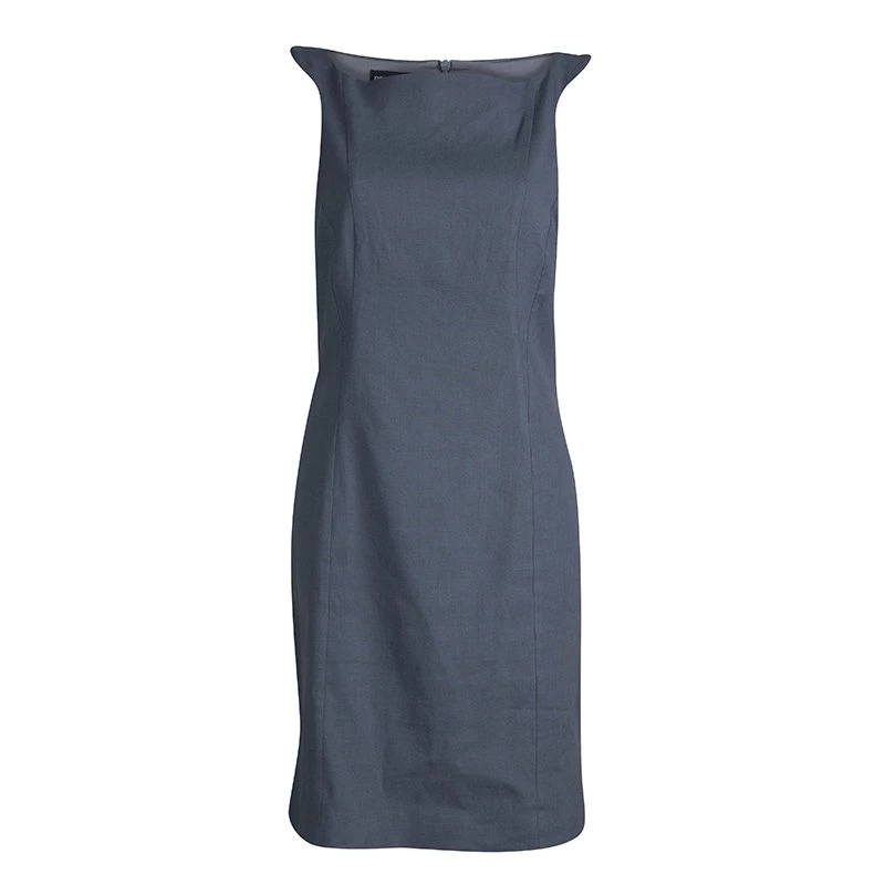 Reflective of Armani’s signature design aesthetic, this dress blends a neat silhouette with easy-going femininity. Made from lightweight material, this shift dress features a short slit at the back hem and an asymmetric neckline. Its well-fitting structure elevates its design.