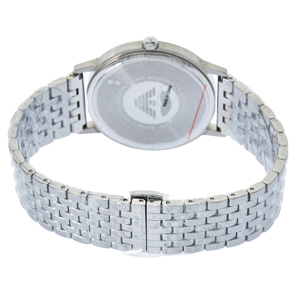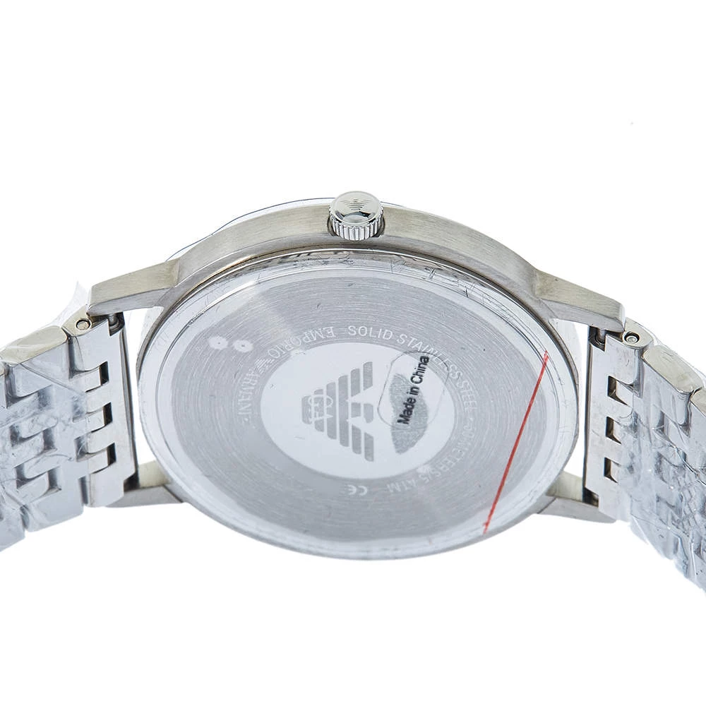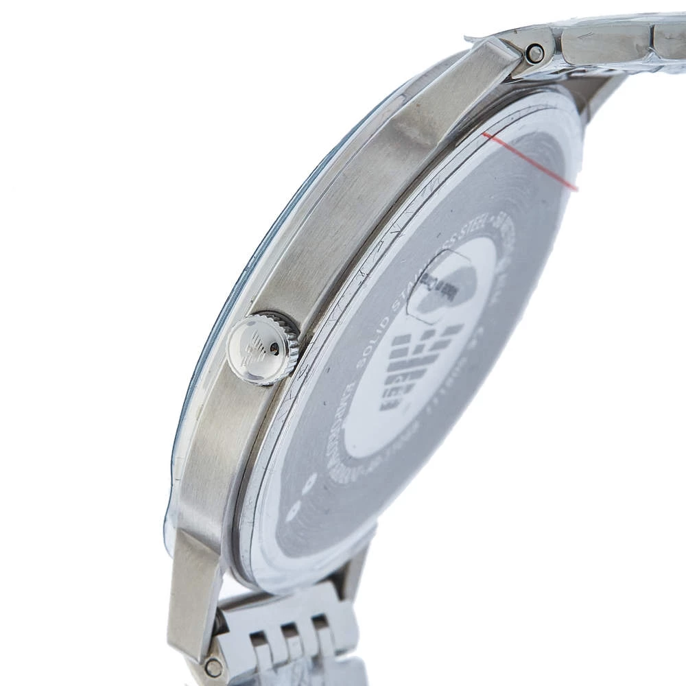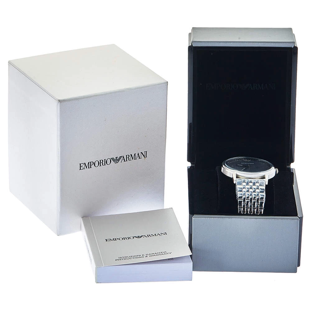 Let this Emporio Armani watch keep you on time and add to your everyday style. It is crafted from stainless steel and it comes with a grey dial flaunting stick and Roman numeral hour markers, minute markers around the outer rim, and the logo at the 12 o’clock position. It is complete with a push-button clasp.