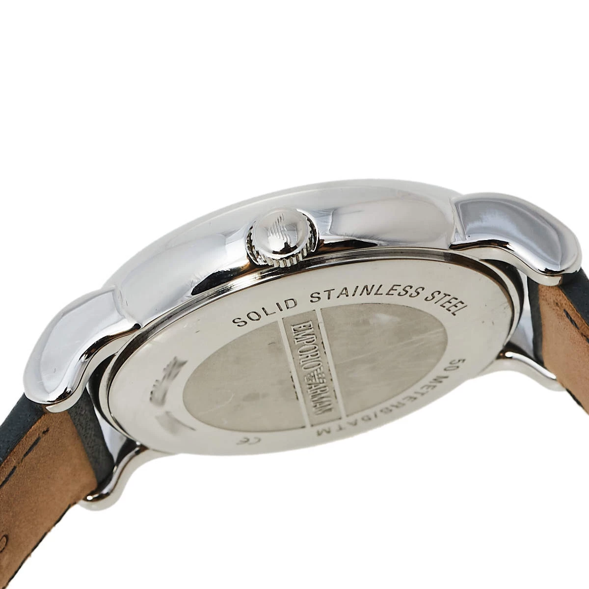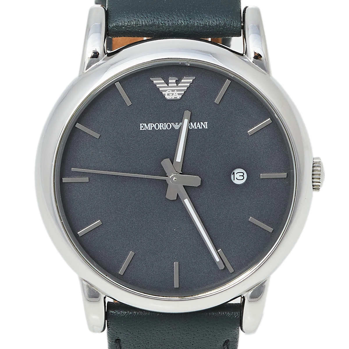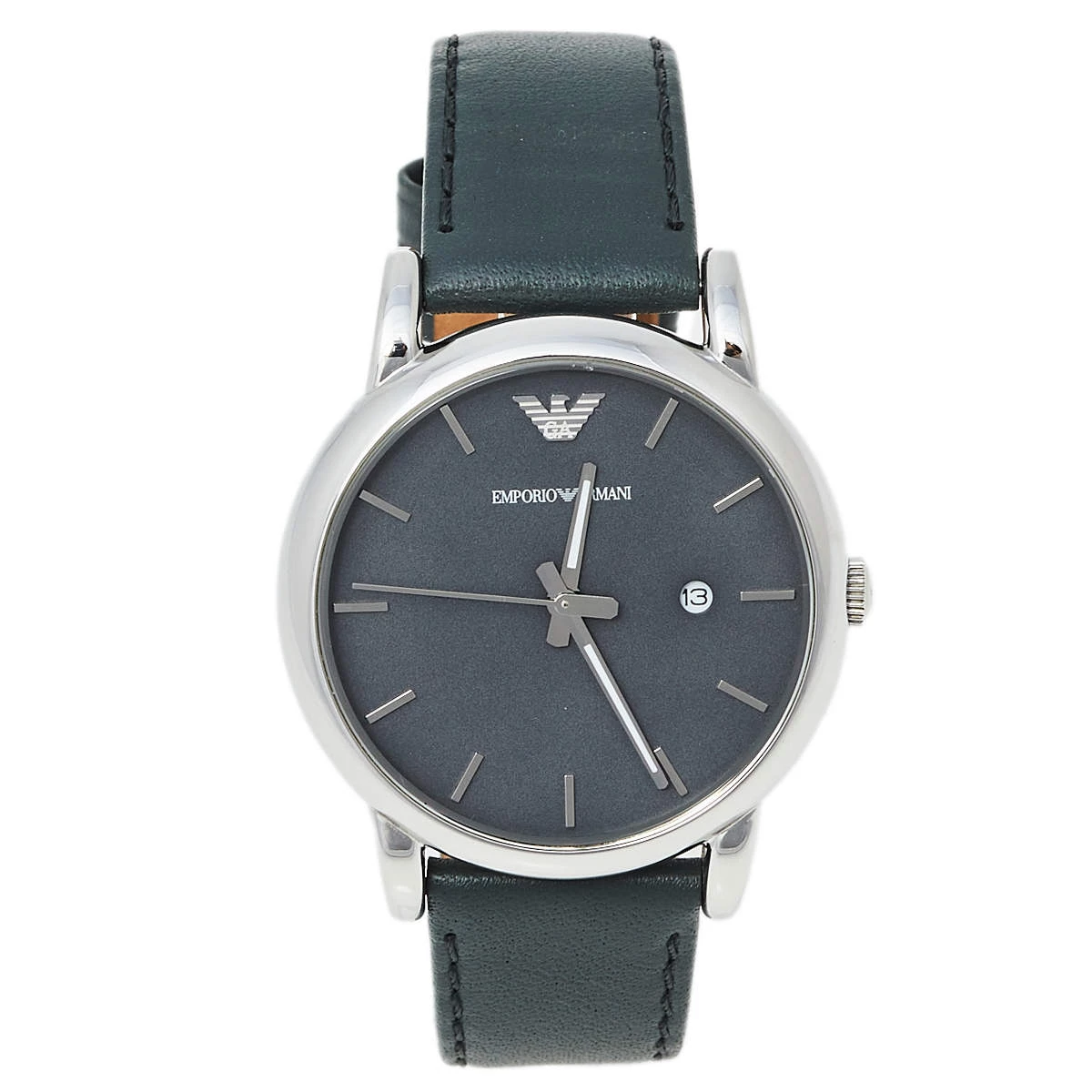 Let this Emporio Armani watch keep you on time and add to your everyday style. The stainless steel case comes with a well-designed grey dial flaunting index hour markers, three hands, a date window, and the logo at the 12 o’clock position. It is complete with a smooth leather bracelet.