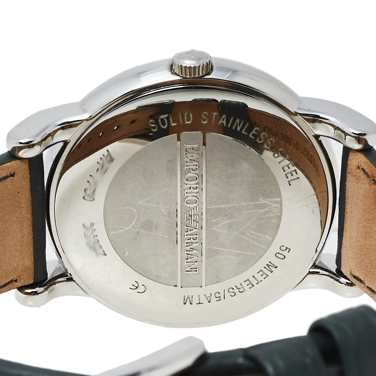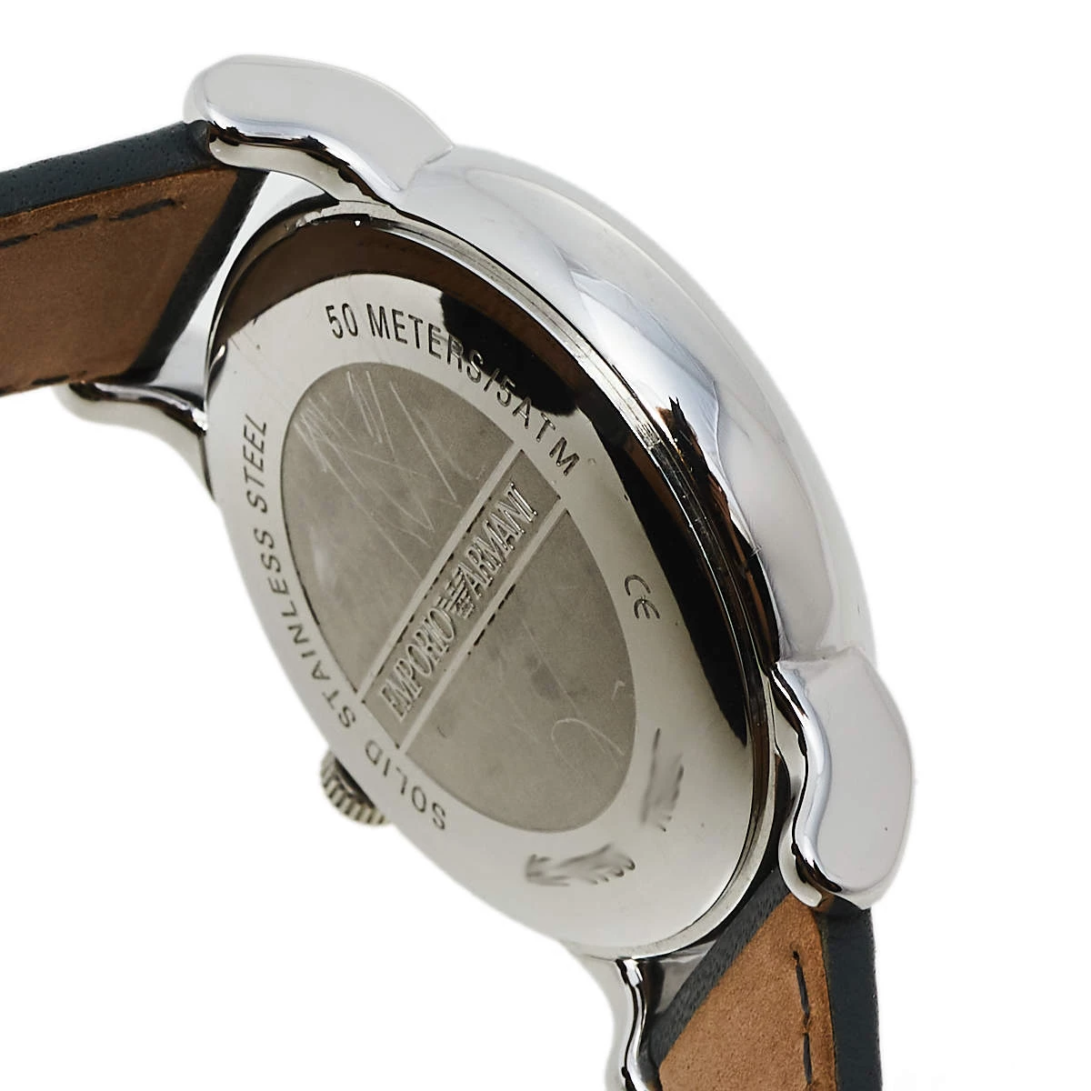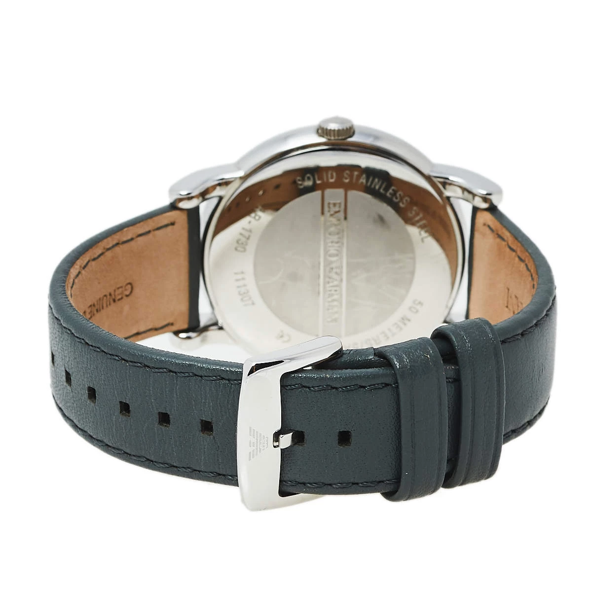 Let this Emporio Armani watch keep you on time and add to your everyday style. The stainless steel case comes with a well-designed grey dial flaunting index hour markers, three hands, a date window, and the logo at the 12 o’clock position. It is complete with a smooth leather bracelet.