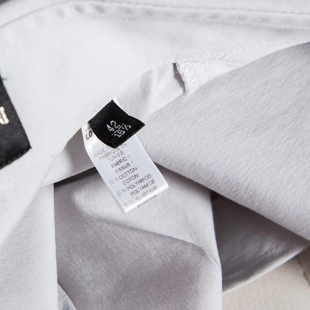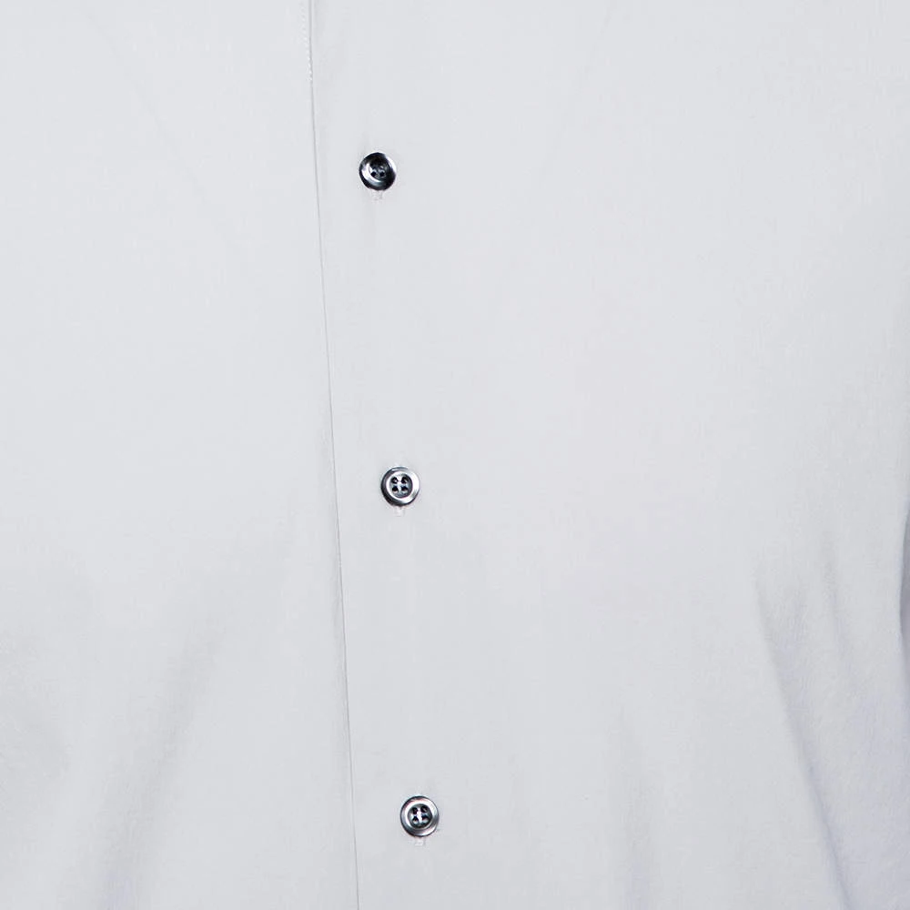 Shirts are an indispensable part of a man’s wardrobe, so Emporio Armani brings you a creation that is both versatile and stylish. It is made from cotton in a grey shade, it features a classic collar, and cuffed long sleeves.