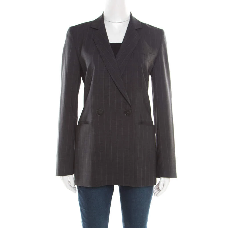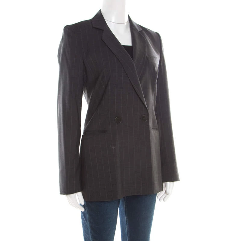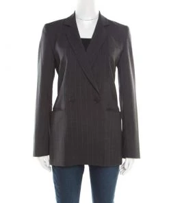 A blazer as finely tailored as this one from Emporio Armani deserves to be in your closet. It has been made from wool and it flaunts a grey shade, double-breasted style, and pockets. It’ll look perfect with tailored trousers and pumps.