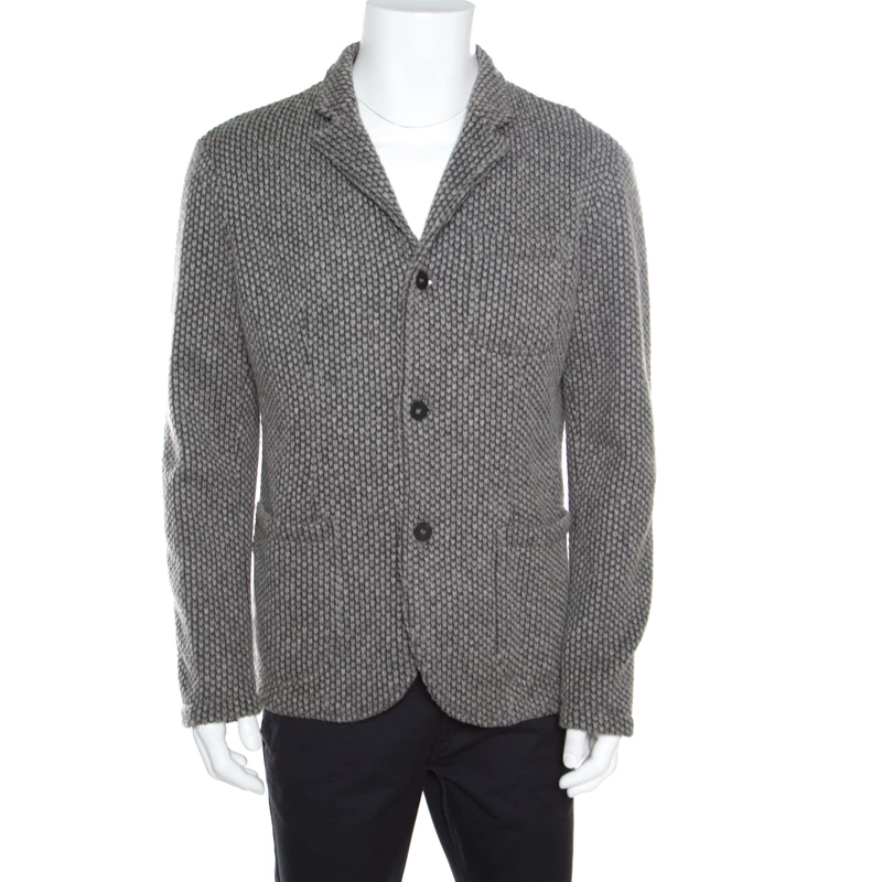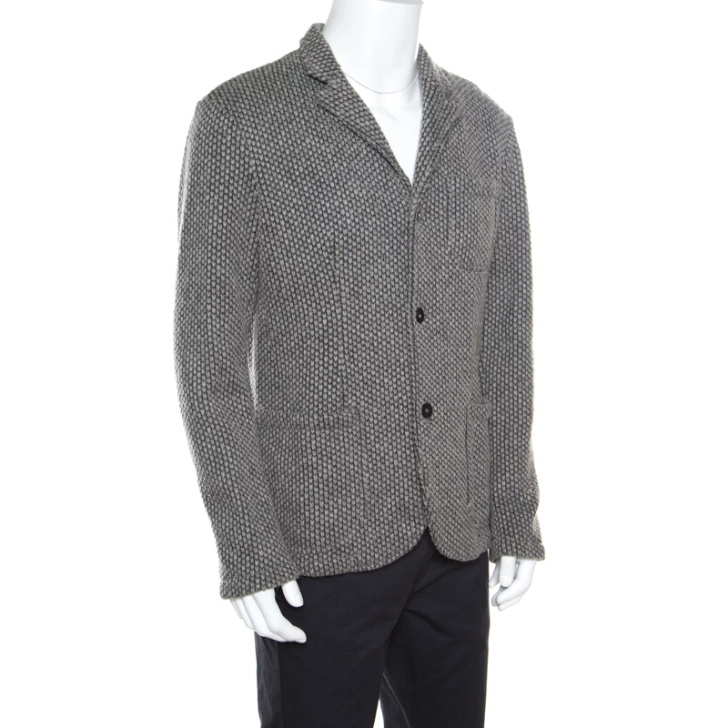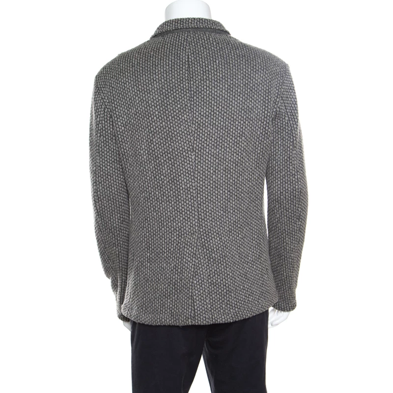 A classic jacket exuding a grey hue is a piece that every modern-day man must have. Coming from the house of Emporio Armani, this jacket is every bit subtle and chic. The textured finish and buttoned closure on the front along with pockets make this jacket both tasteful and comfortable. Style this with statement-making separates for a unique look.