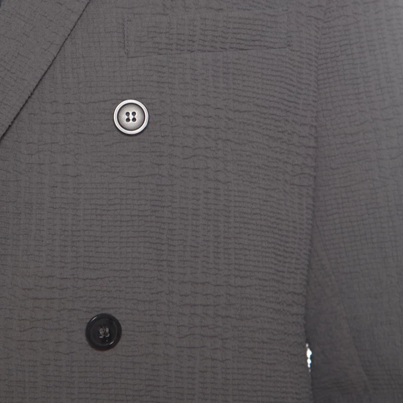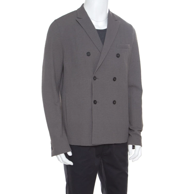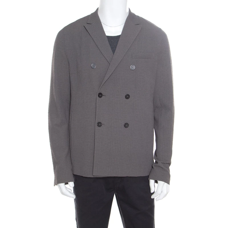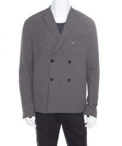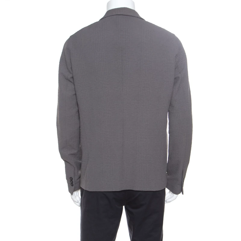 A blazer that can effortlessly enhance your formal outfits, this Emporio Armani blazer is cut to a fine-fitting structure featuring double-breasted design. Equipped with long sleeves and notched lapels, it carries a muted grey hue, making the piece equally understated and dapper. Crafted with a blend of fabrics, the blazer is ideal to add a subtle charm to your winter ensembles.