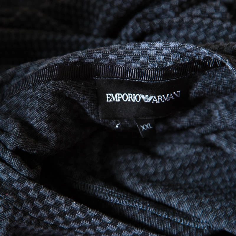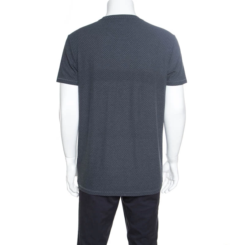 This grey T-shirt from Emporio Armani is perfect for all your casual outings. It is made of a blend of fabrics and features a textured knit pattern all over it. A round neckline and short sleeves complete this simple and sophisticated T-shirt. Pair it with smart denims and sneakers.