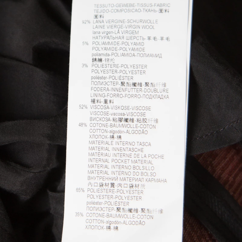 - Fabric: Shell : 92% Wool, 5% Polyamide, 3% Polyester (Lining : 52% Viscose, 48% Cotton )