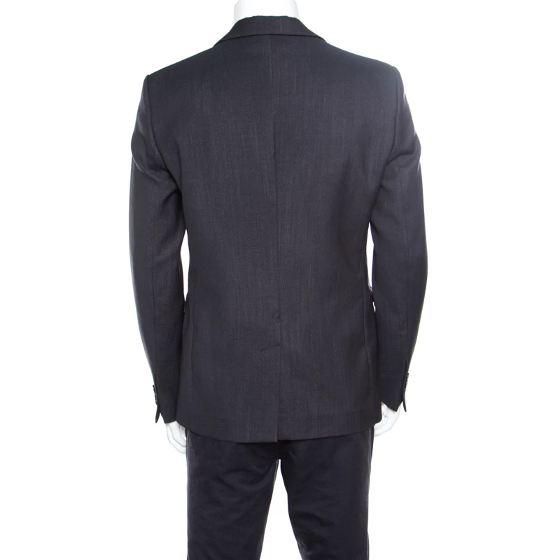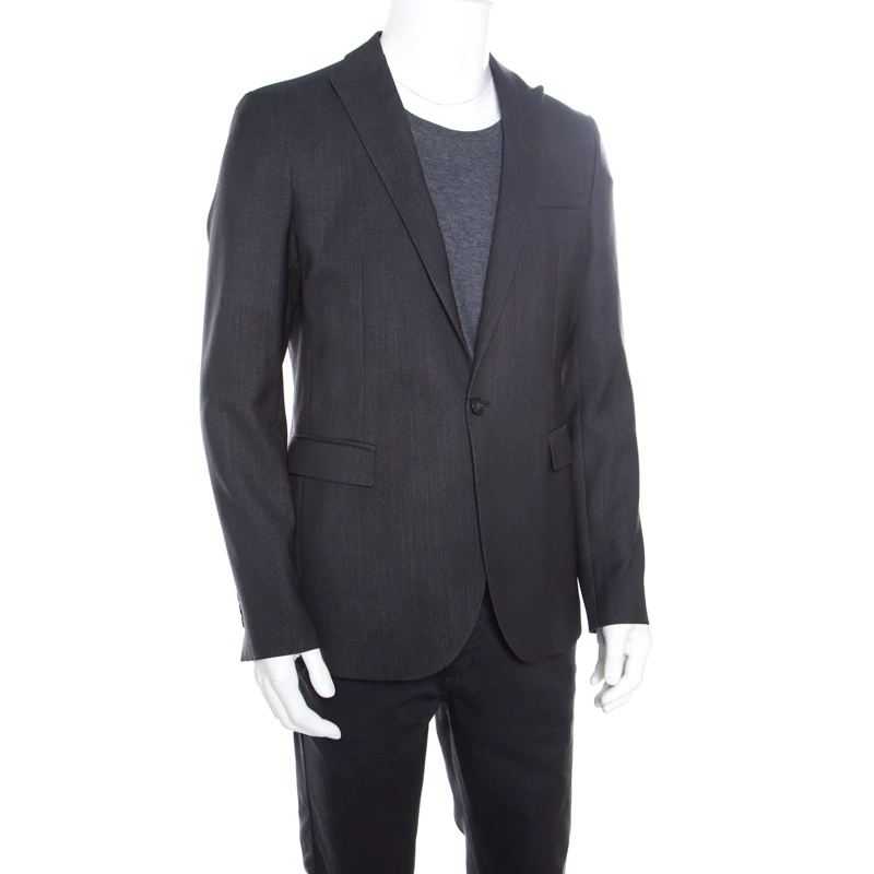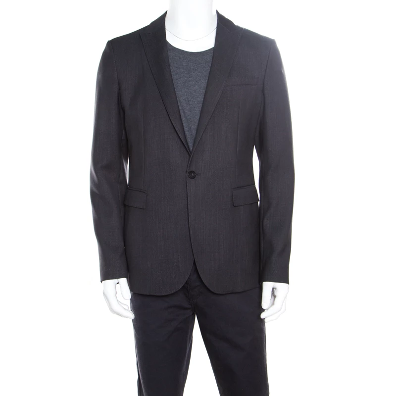 Your wardrobe deserves everything chic and stylish and what better than this tailored blazer from Emporio Armani! The grey creation is made of a wool blend and features peak lapels, a front button fastening, a chest pocket, twin flap pockets, and long sleeves. It comes with a fingerprint lining and can be paired with smart trousers and monk loafers for a formal work setting.