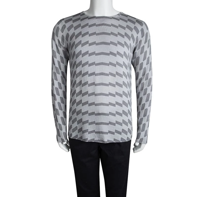 This sweater from the house of Emporio Armani is a wardrobe essential. Cut for a close fit, this piece is tailored from a grey wool and features an eye-catching geometric print on it. It comes with full sleeves and a crew neckline. We like it styled with denim and sneakers.