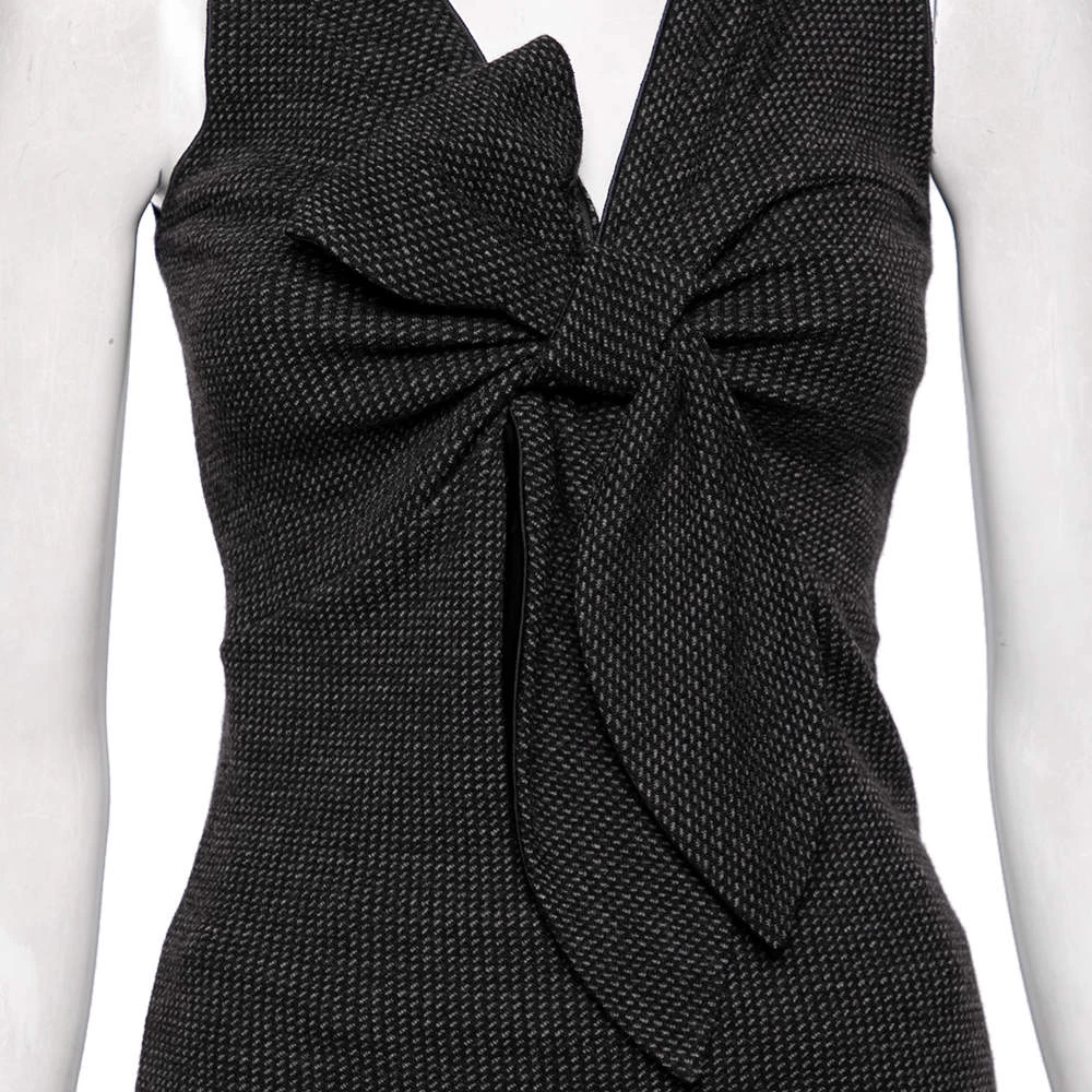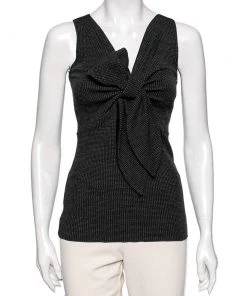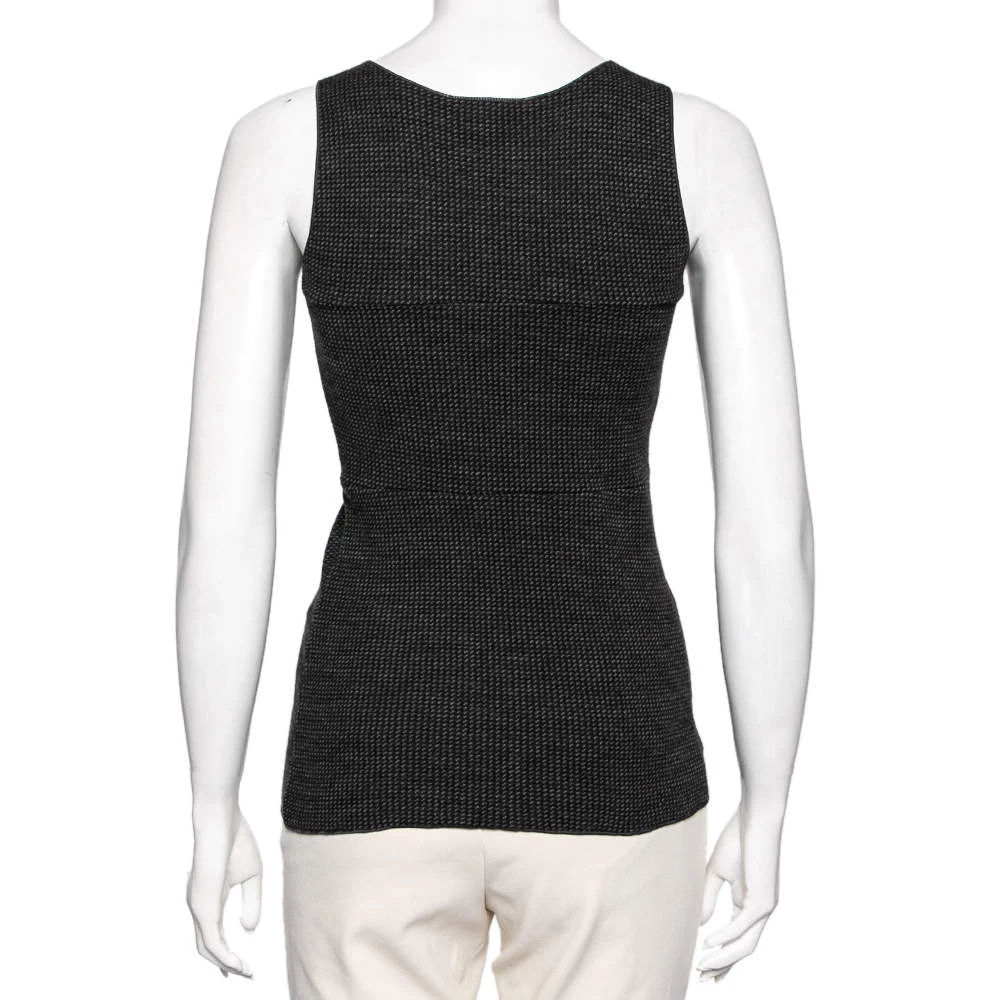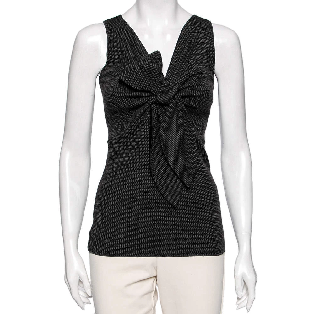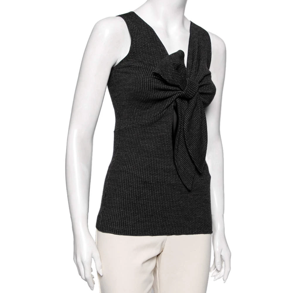 This sleeveless top from Emporio Armani is effortlessly stylish! The grey wool creation features a lovely knot detail in the front and a flattering silhouette. It comes with a V-neckline and will look great with trousers as well as skirts. Add it to your wardrobe today!