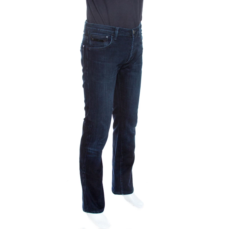 For days when you want to dress casually, this pair of Emporio Armani jeans will be just right. Made from a cotton blend, the indigo jeans feature details of belt loops, pockets, and front closure. The pair will offer you a nice fit.
