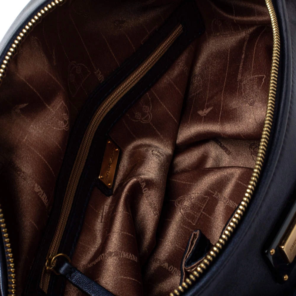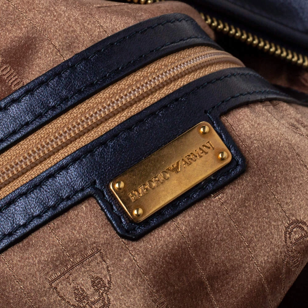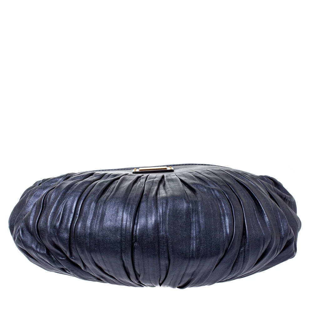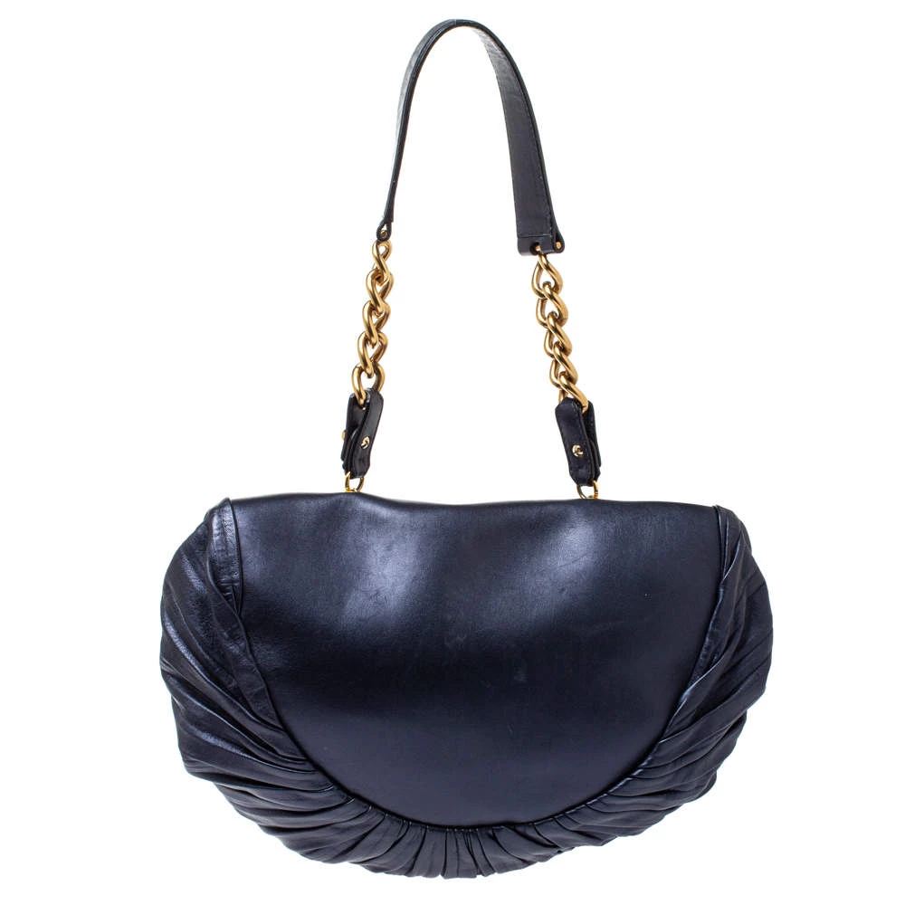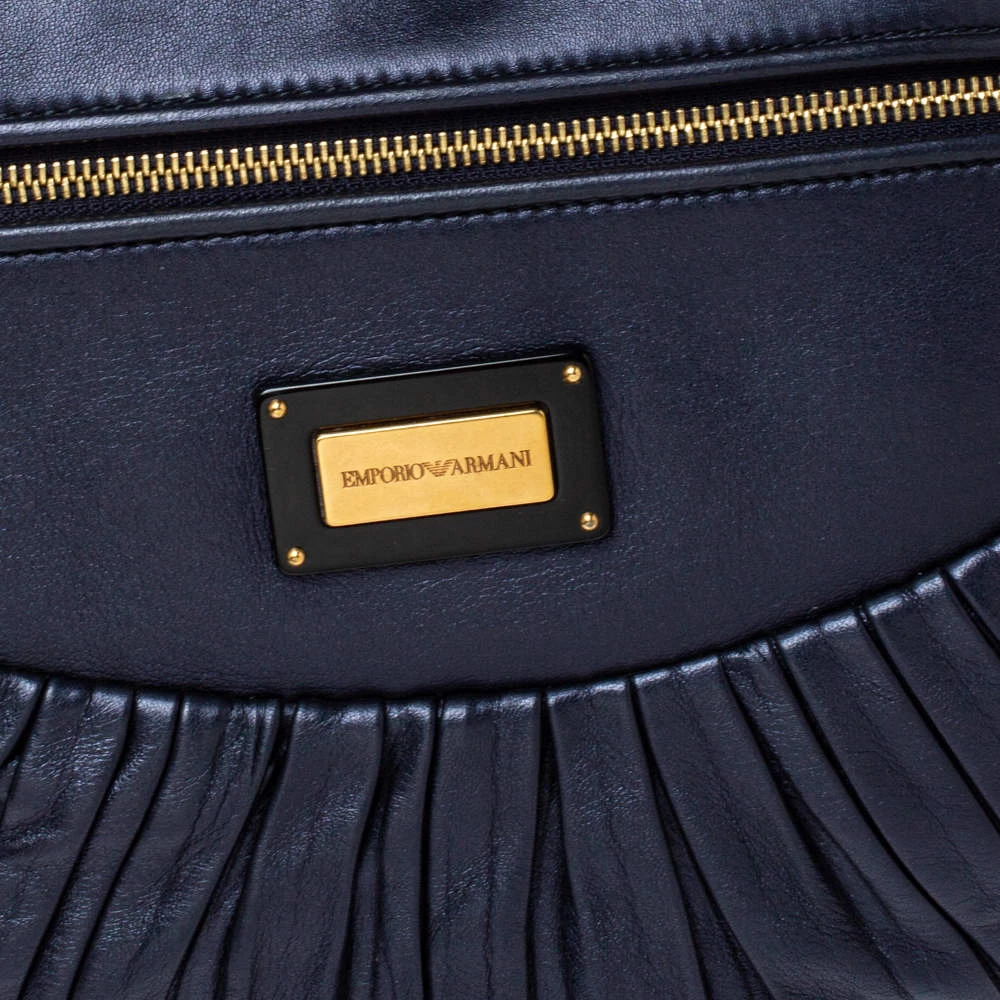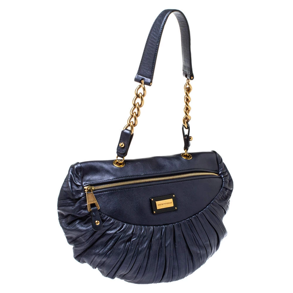This stunning hobo bag by Emporio Armani is perfect for everyday use. Crafted from pleated leather, it comes in a shade of blue. It has a chain link handle with a leather rest. It opens to a fabric interior and is finished with gold-tone hardware. Grab it now!